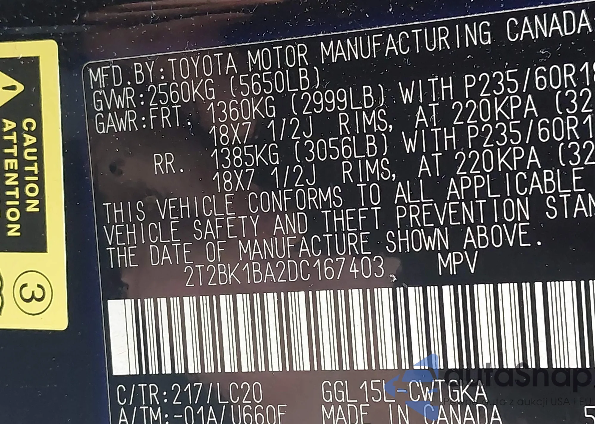 VIN: 2T2BK1BA2DC167403