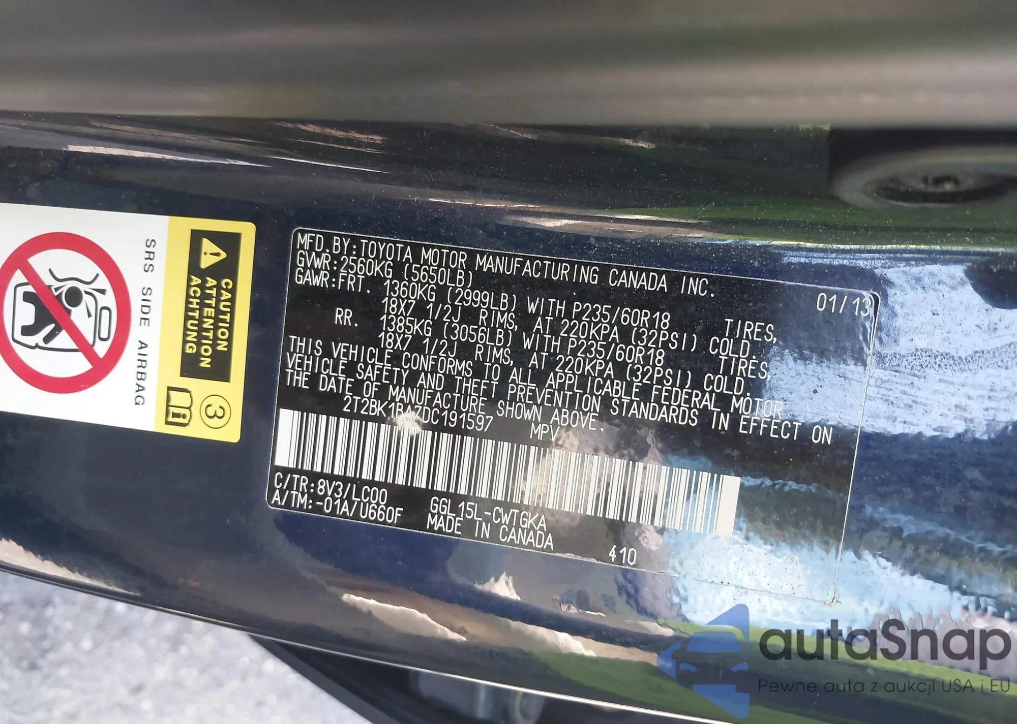 VIN: 2T2BK1BA7DC191597