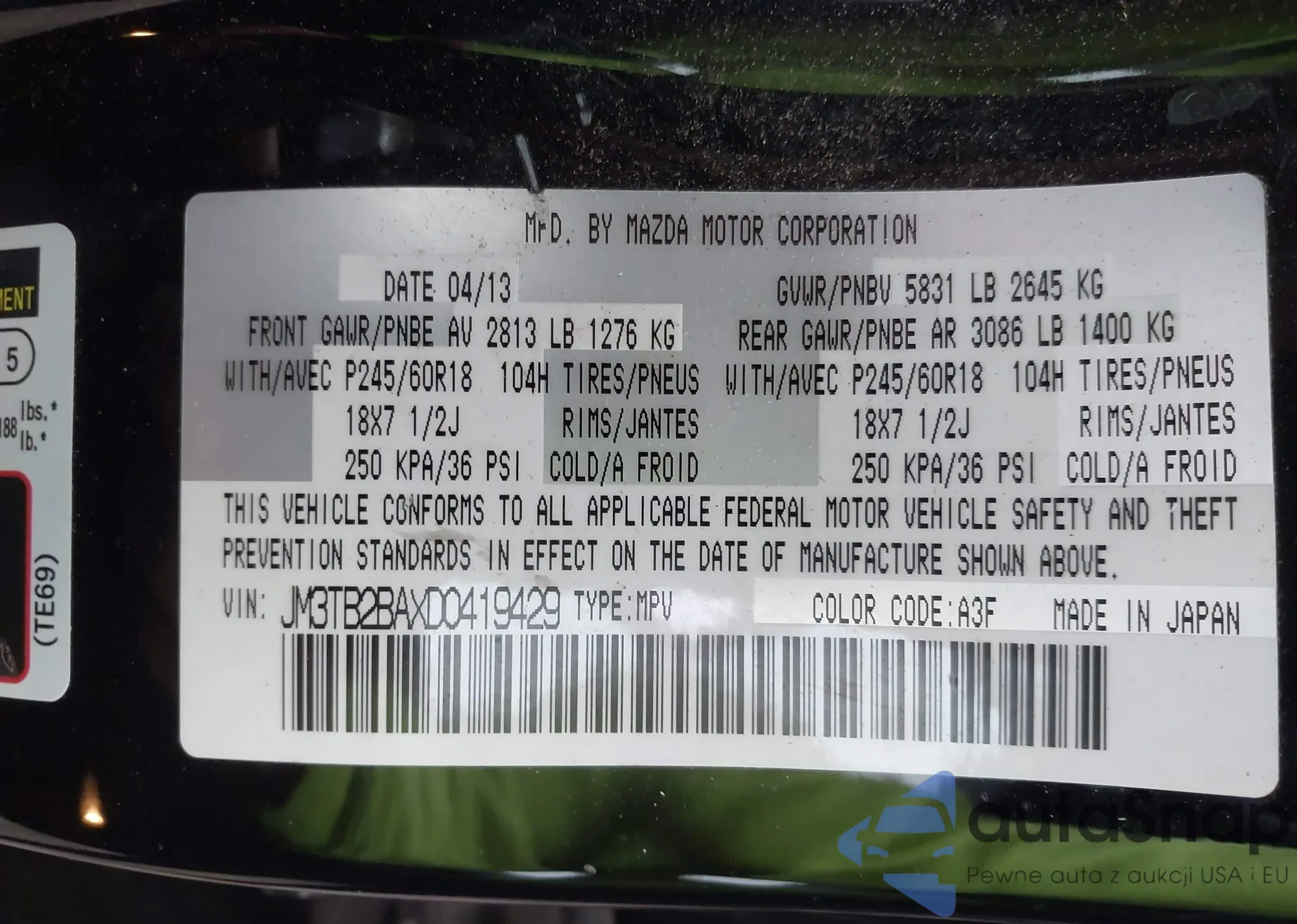 • VIN: JM3TB2BAXD0419429
