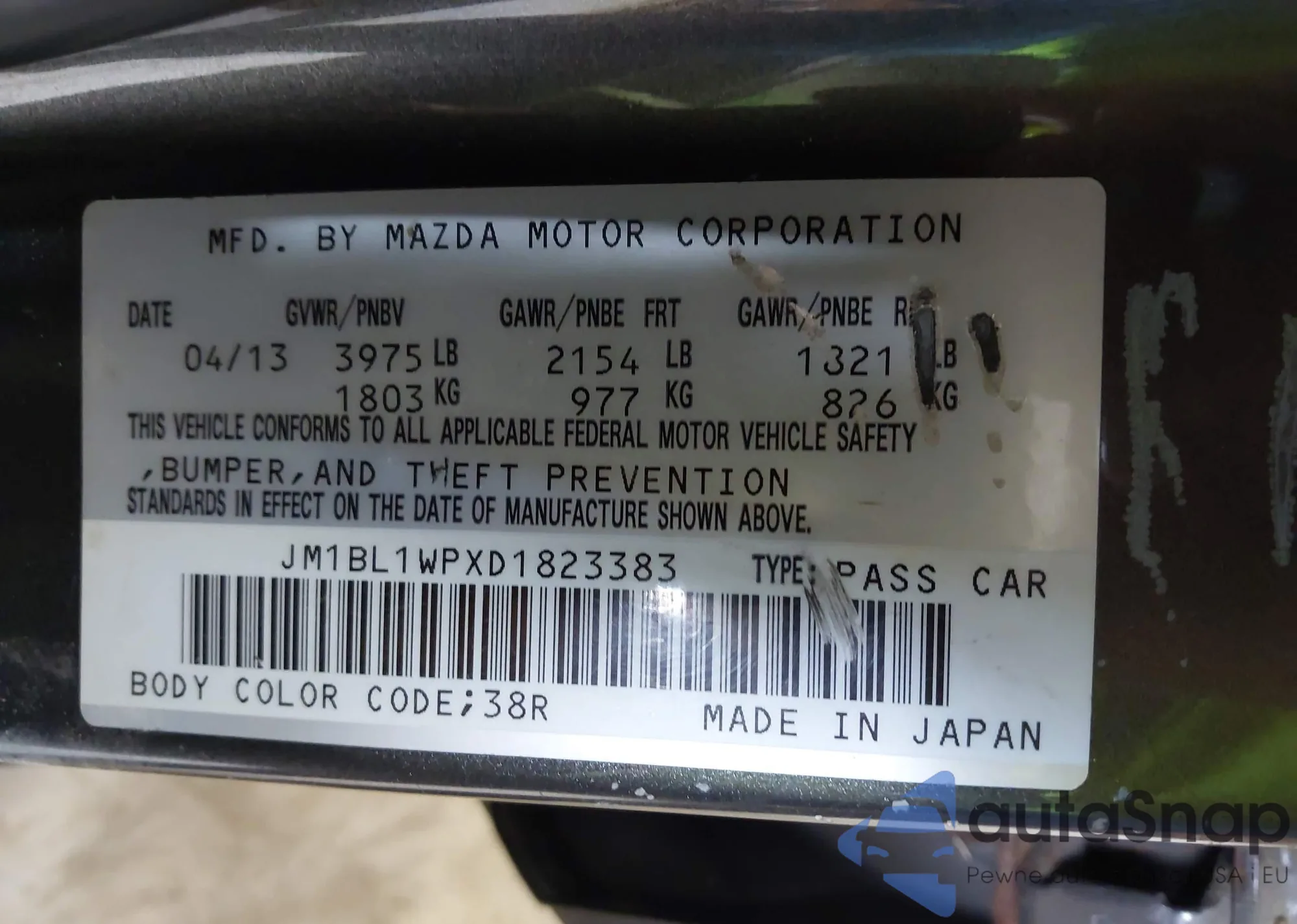 VIN: JM1BL1WPXD1823383