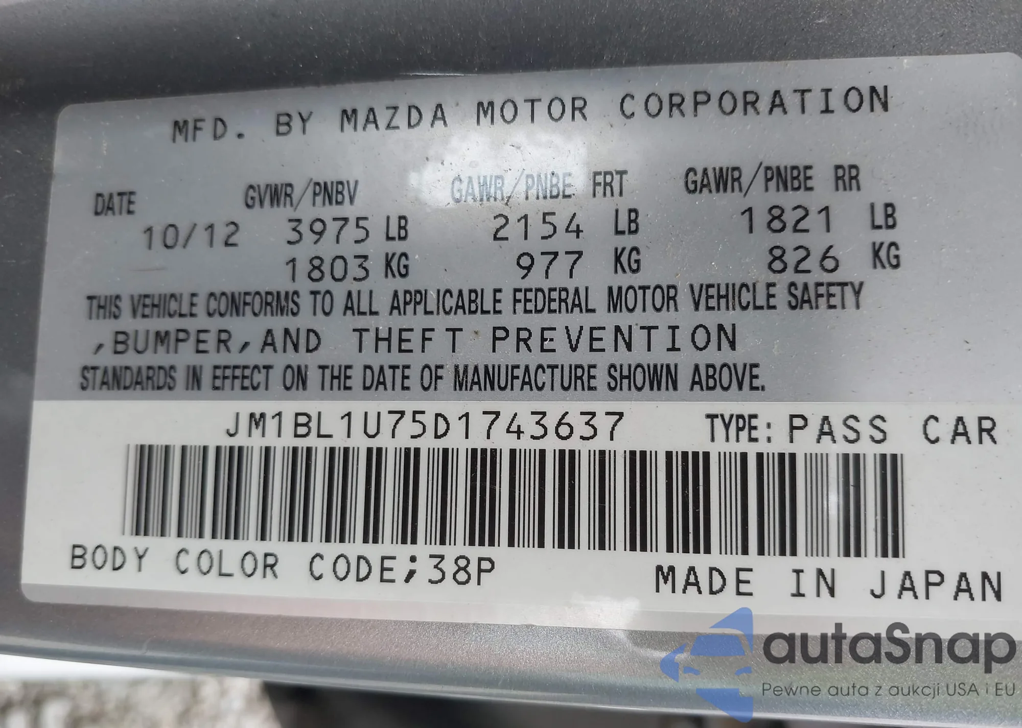 VIN: JM1BL1U75D1743637