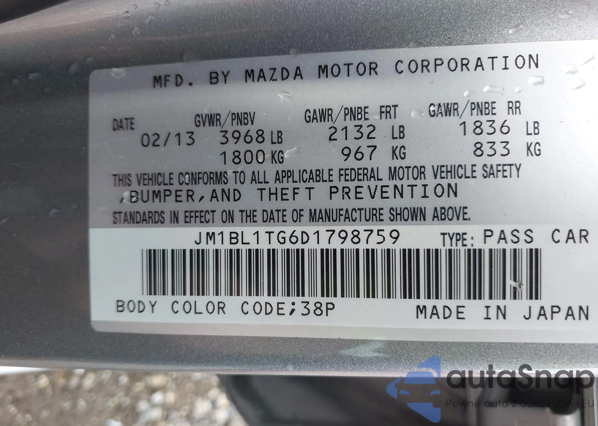 Автомобиль Mazda 3 2013 (VIN JM1BL1TG6D1798759) ранее не участвовал в торгах. Документы чистые, пробег соответствует или ниже среднего по рынку. Продаётся страховой компанией — рекомендуем покупку. Доставка в порт займет около 6–8 недель.