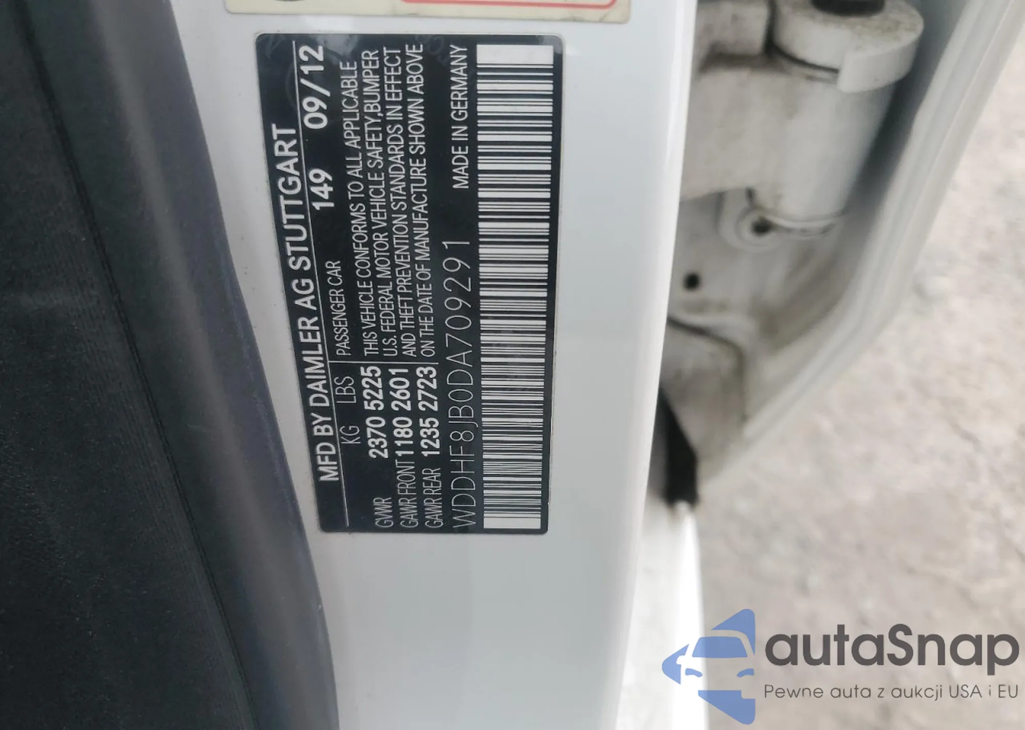VIN: WDDHF8JB0DA709291