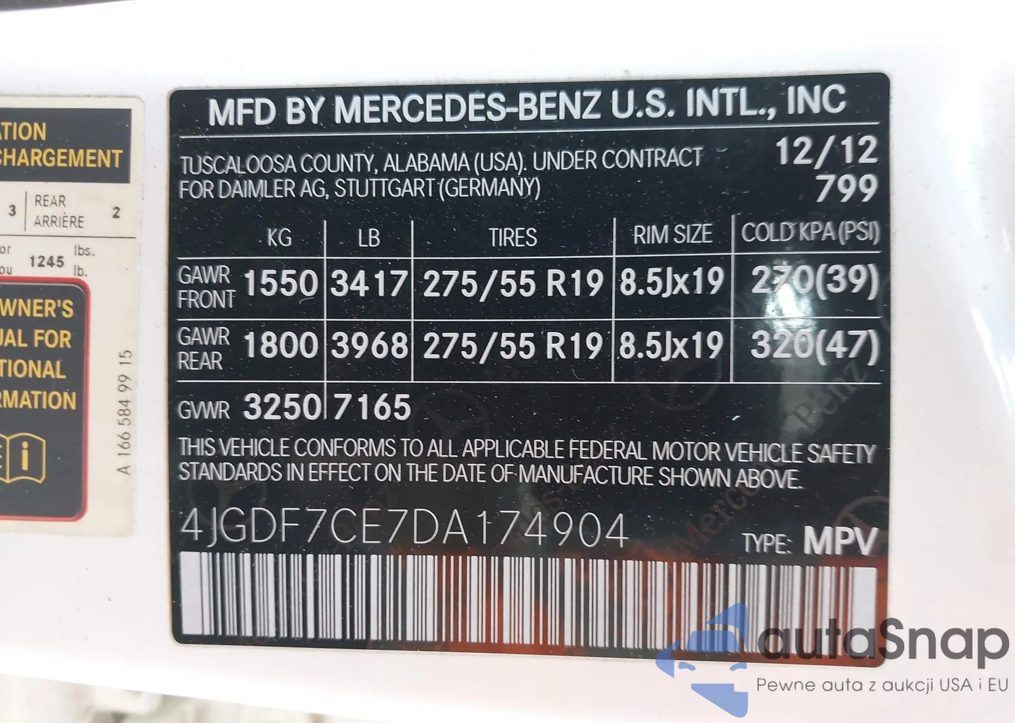 • VIN: 4JGDF7CE7DA174904