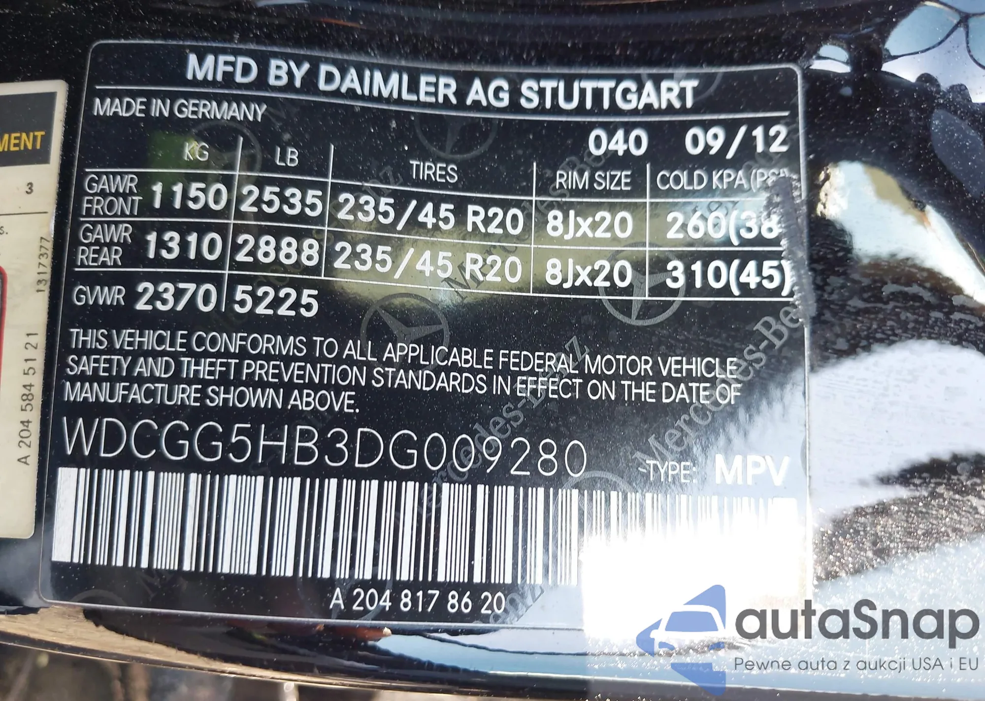 VIN: WDCGG5HB3DG009280