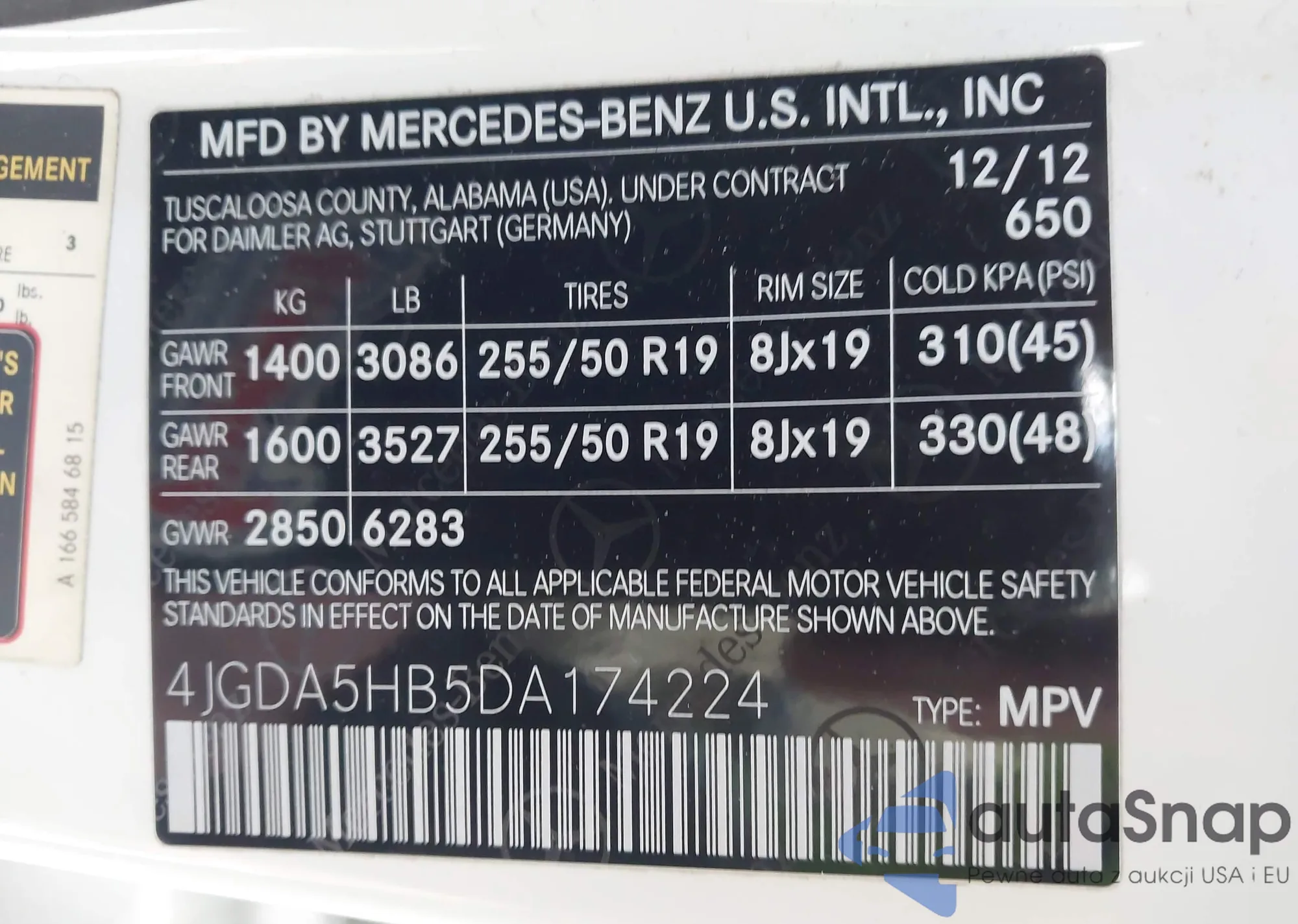 VIN: 4JGDA5HB5DA174224