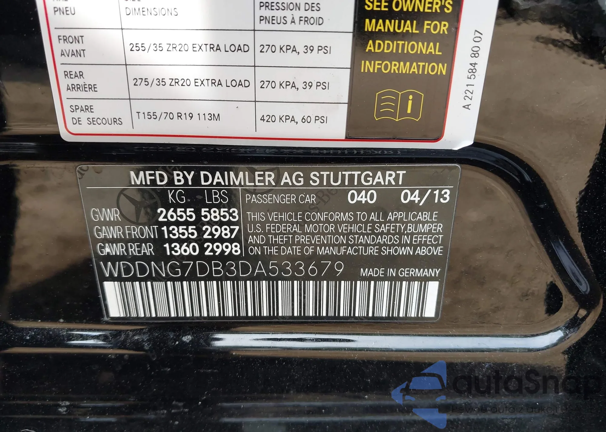 • VIN: WDDNG7DB3DA533679