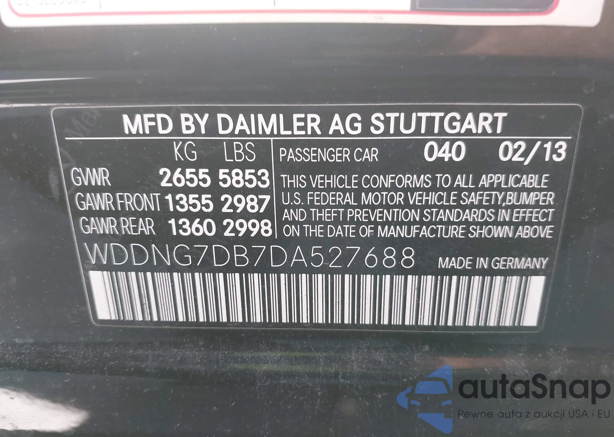 Автомобиль Mercedes-Benz S-klasse 2013 (VIN WDDNG7DB7DA527688) ранее не участвовал в торгах. Документы чистые, пробег соответствует или ниже среднего по рынку. Продаётся страховой компанией — рекомендуем покупку. Доставка в порт займет около 6–8 недель.