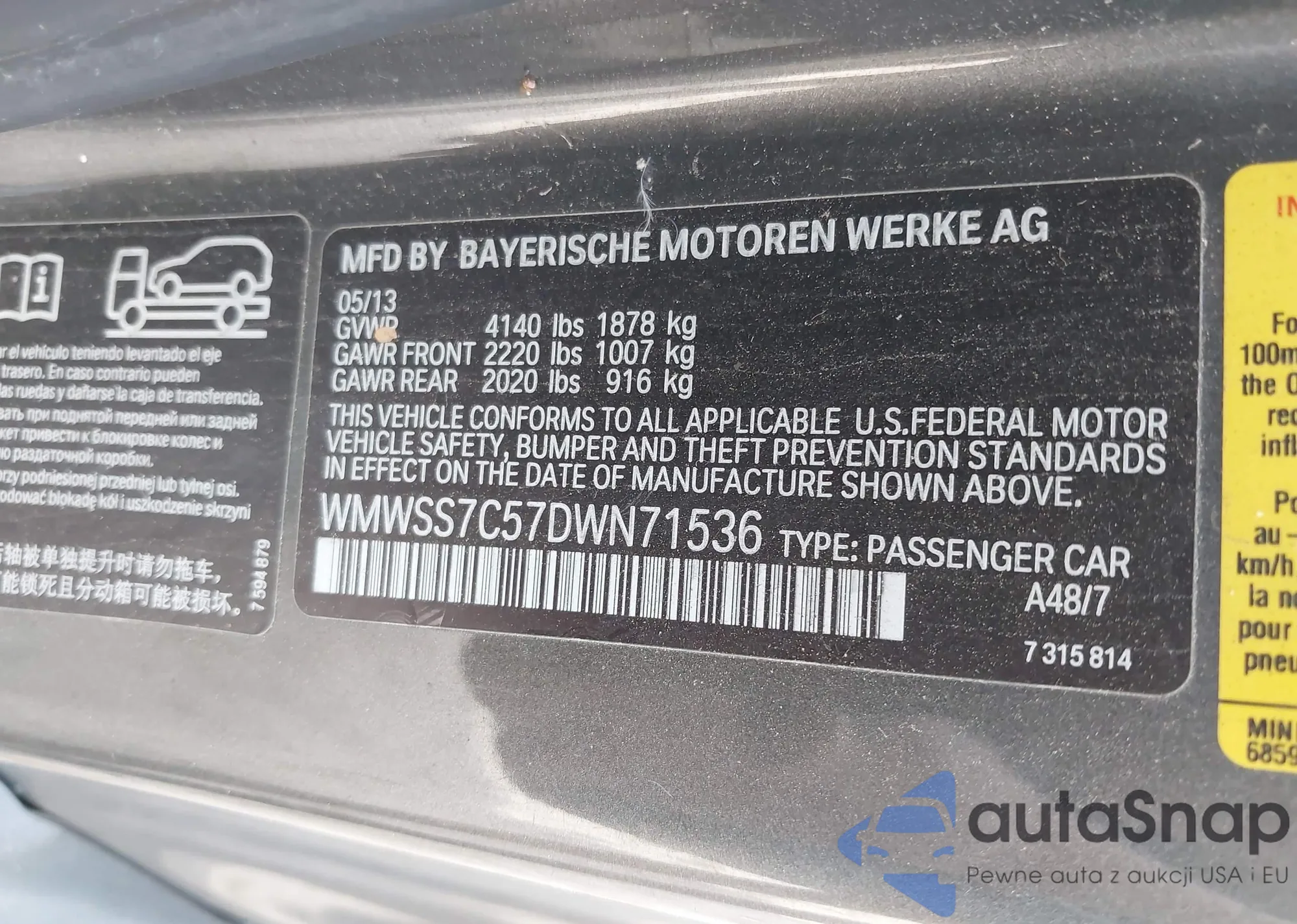VIN: WMWSS7C57DWN71536