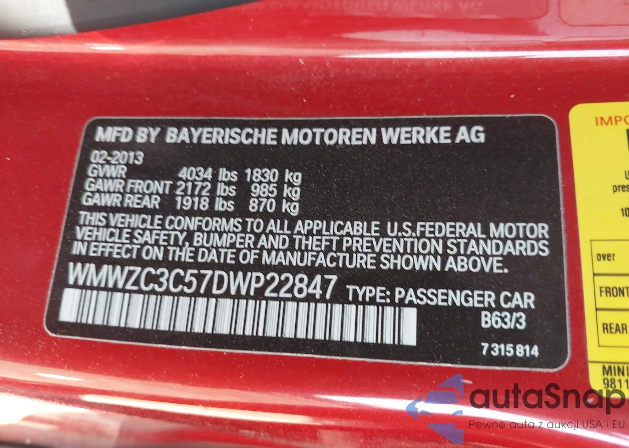 VIN: WMWZC3C57DWP22847