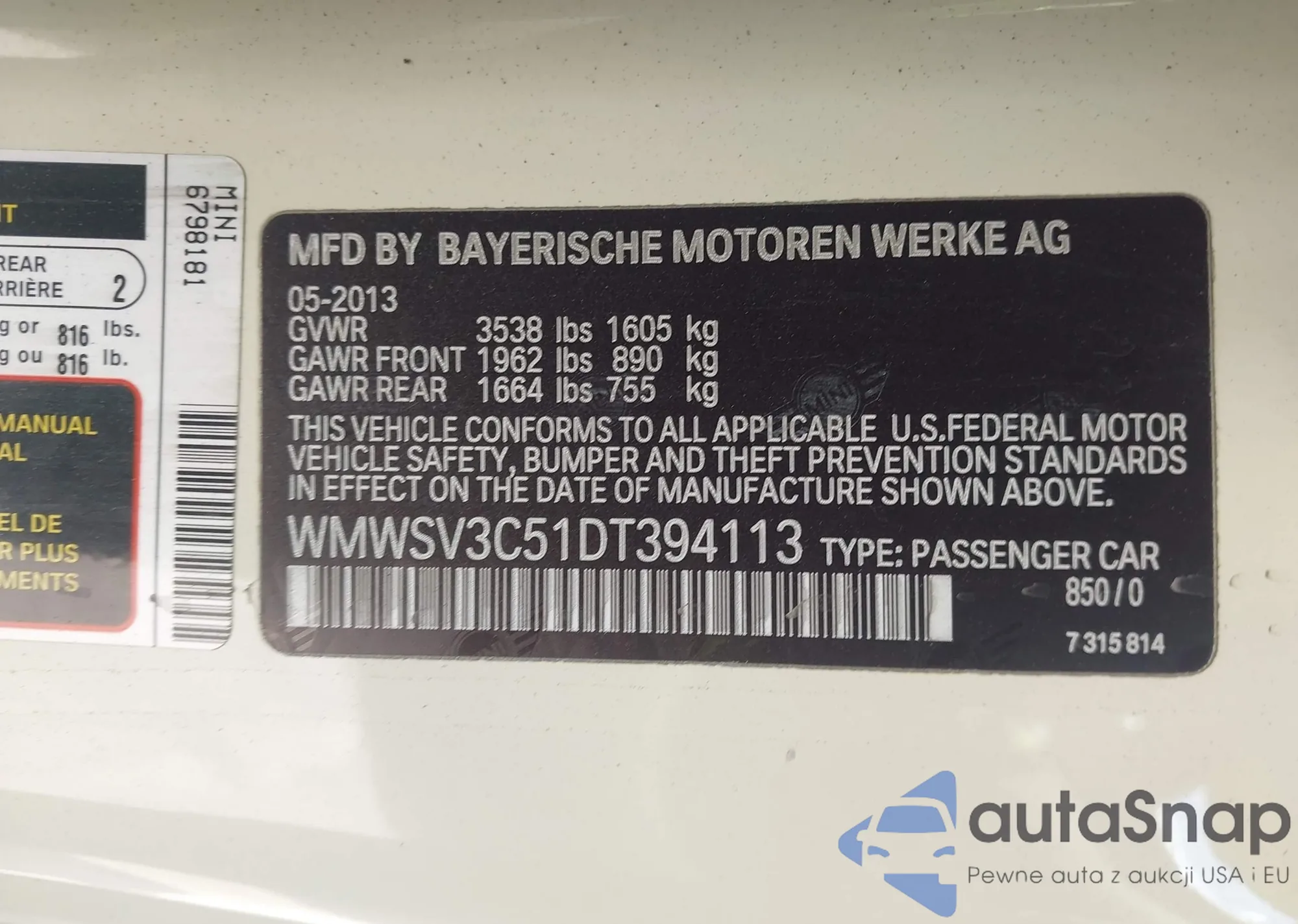 Автомобиль MINI Hard top 2013 (VIN WMWSV3C51DT394113) ранее не участвовал в торгах. Документы чистые, пробег соответствует или ниже среднего по рынку. Продаётся страховой компанией — рекомендуем покупку. Доставка в порт займет около 6–8 недель.