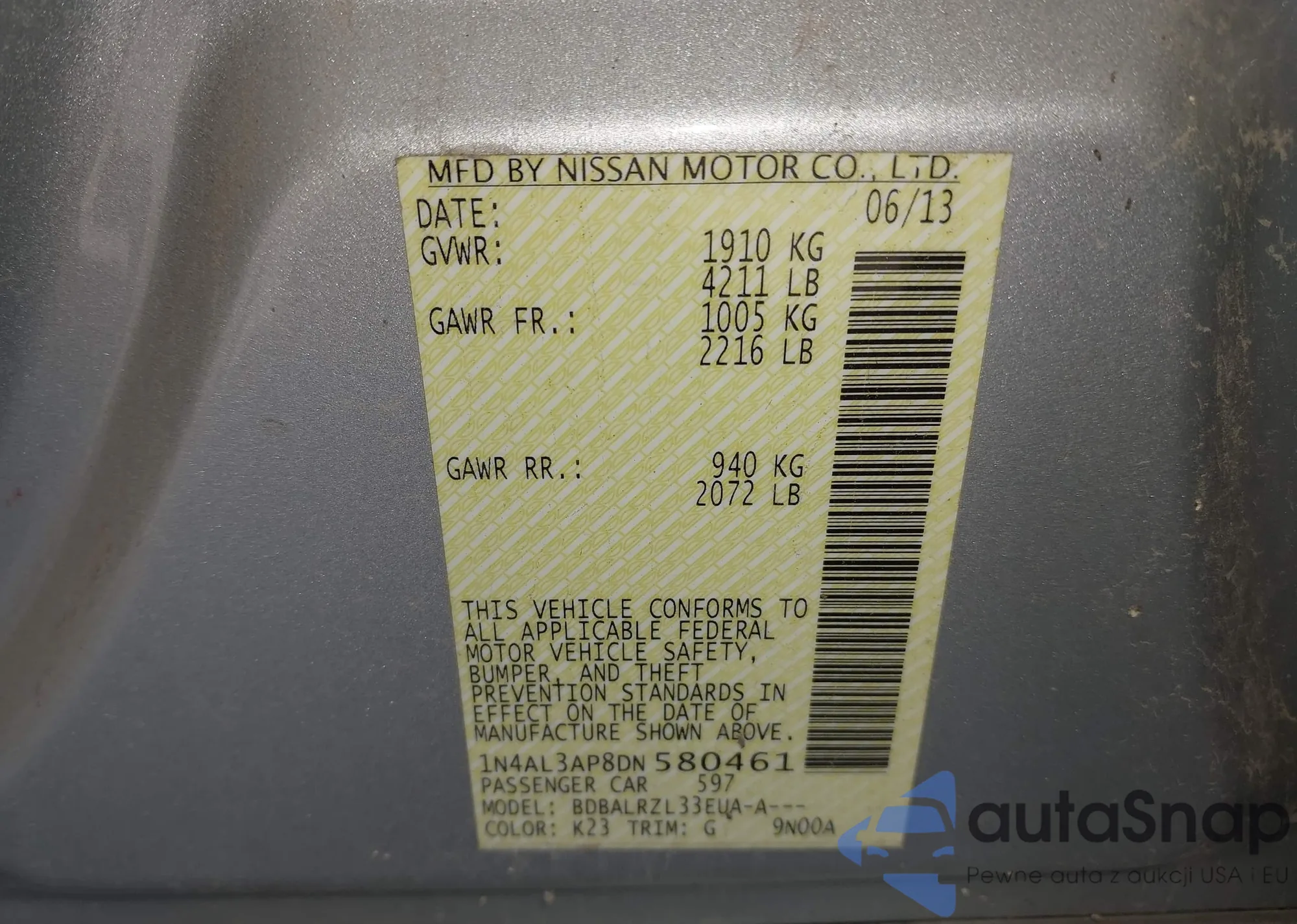 VIN: 1N4AL3AP8DN580461