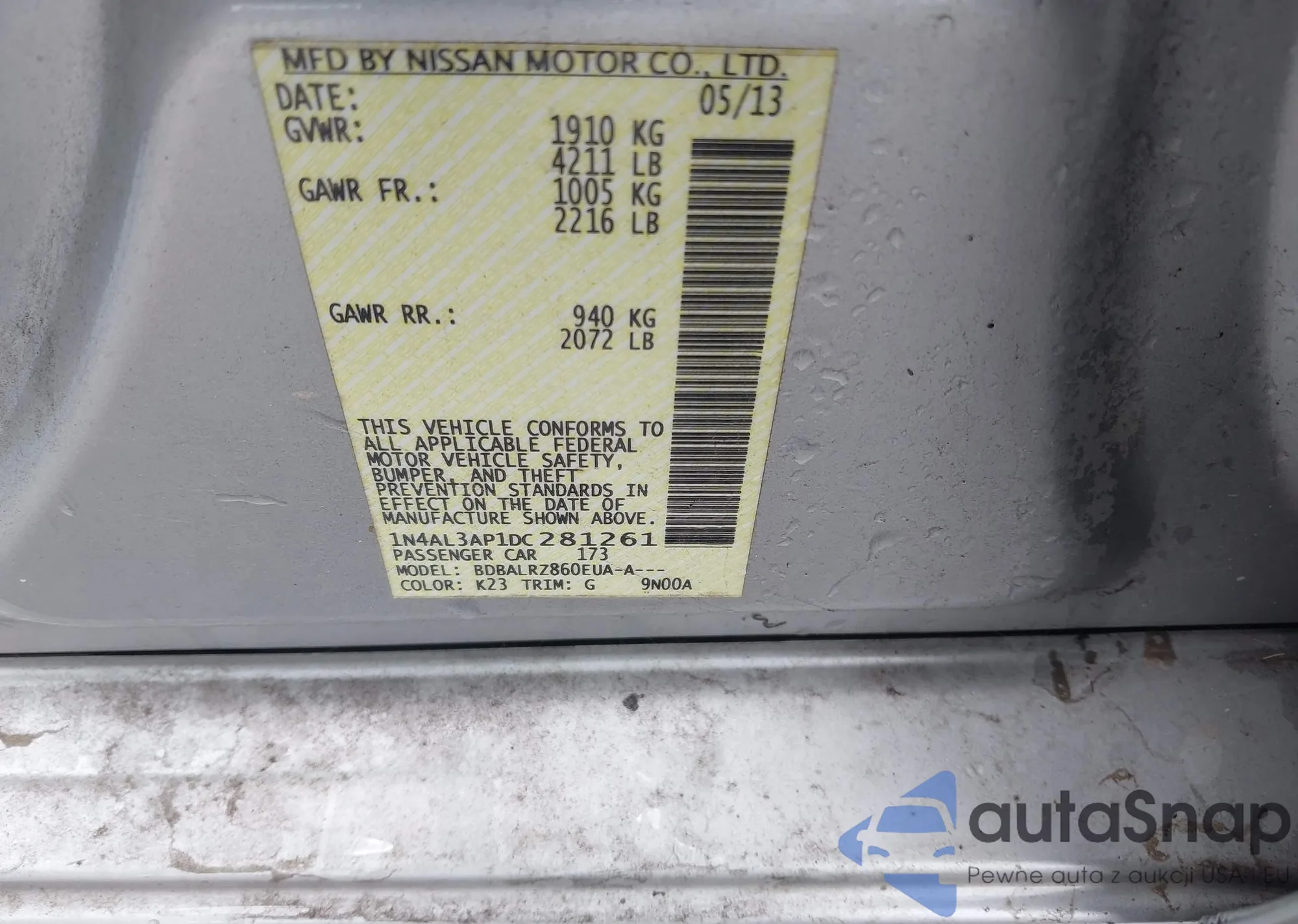 • VIN: 1N4AL3AP1DC281261