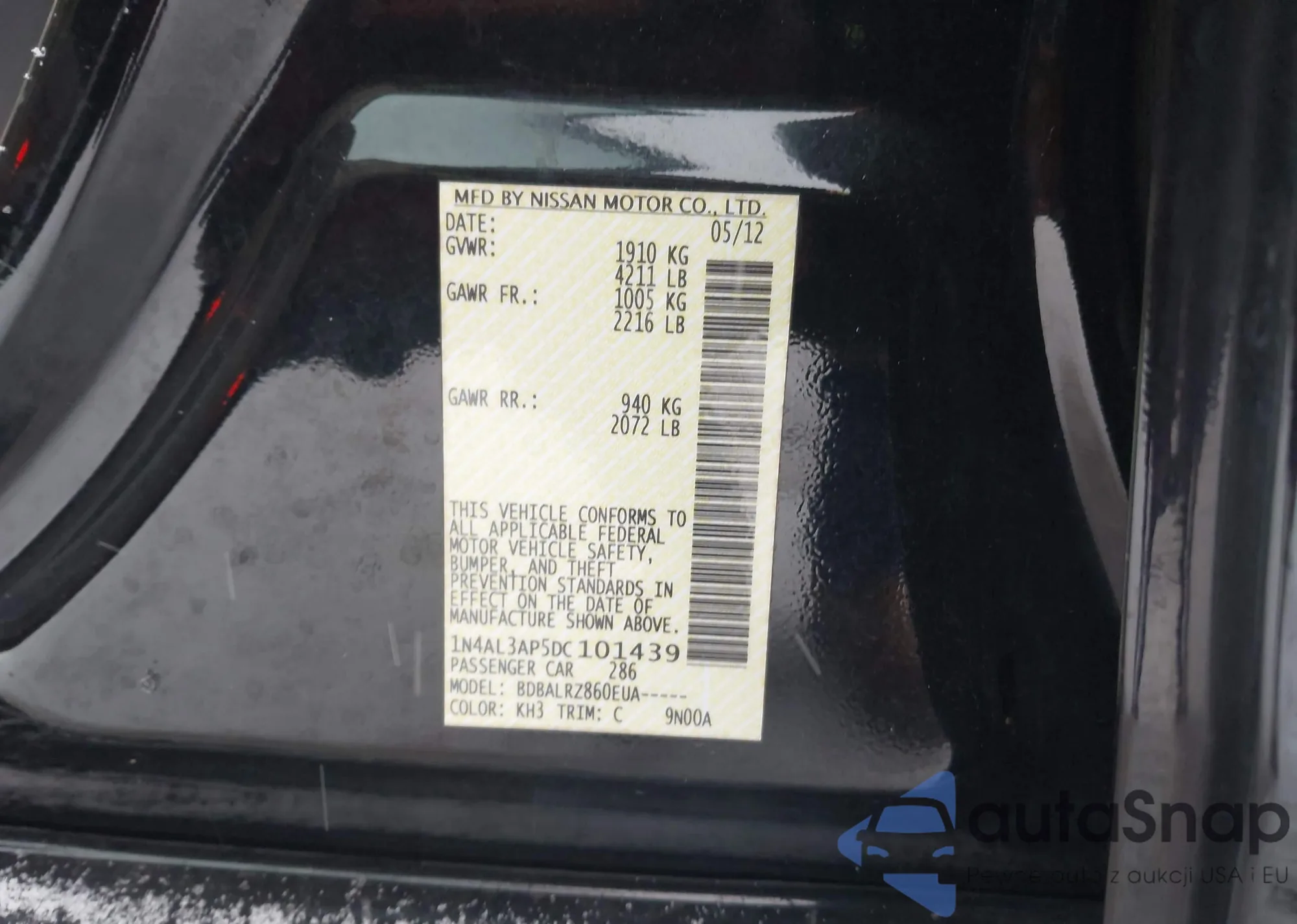 VIN: 1N4AL3AP5DC101439
