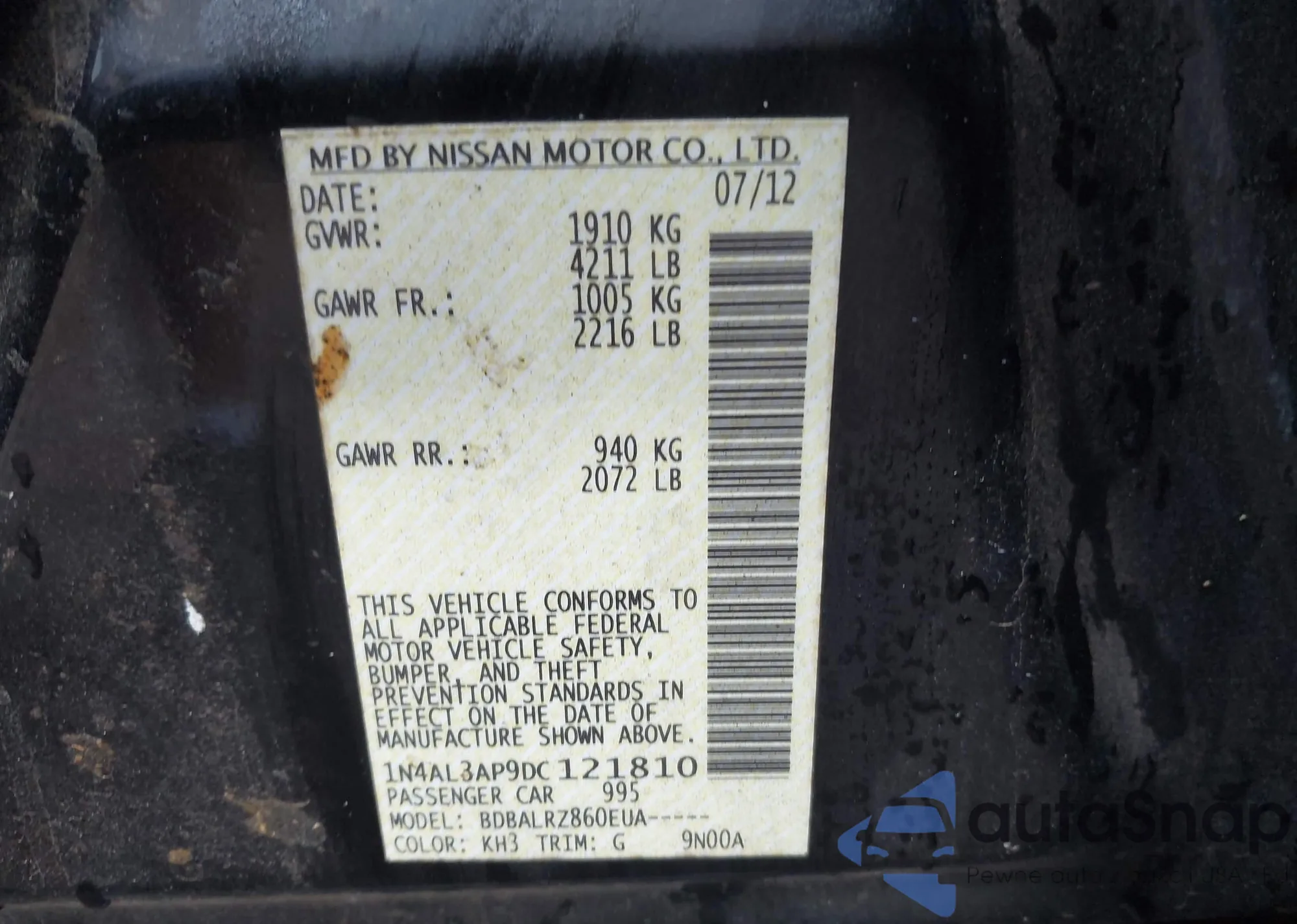 VIN: 1N4AL3AP9DC121810