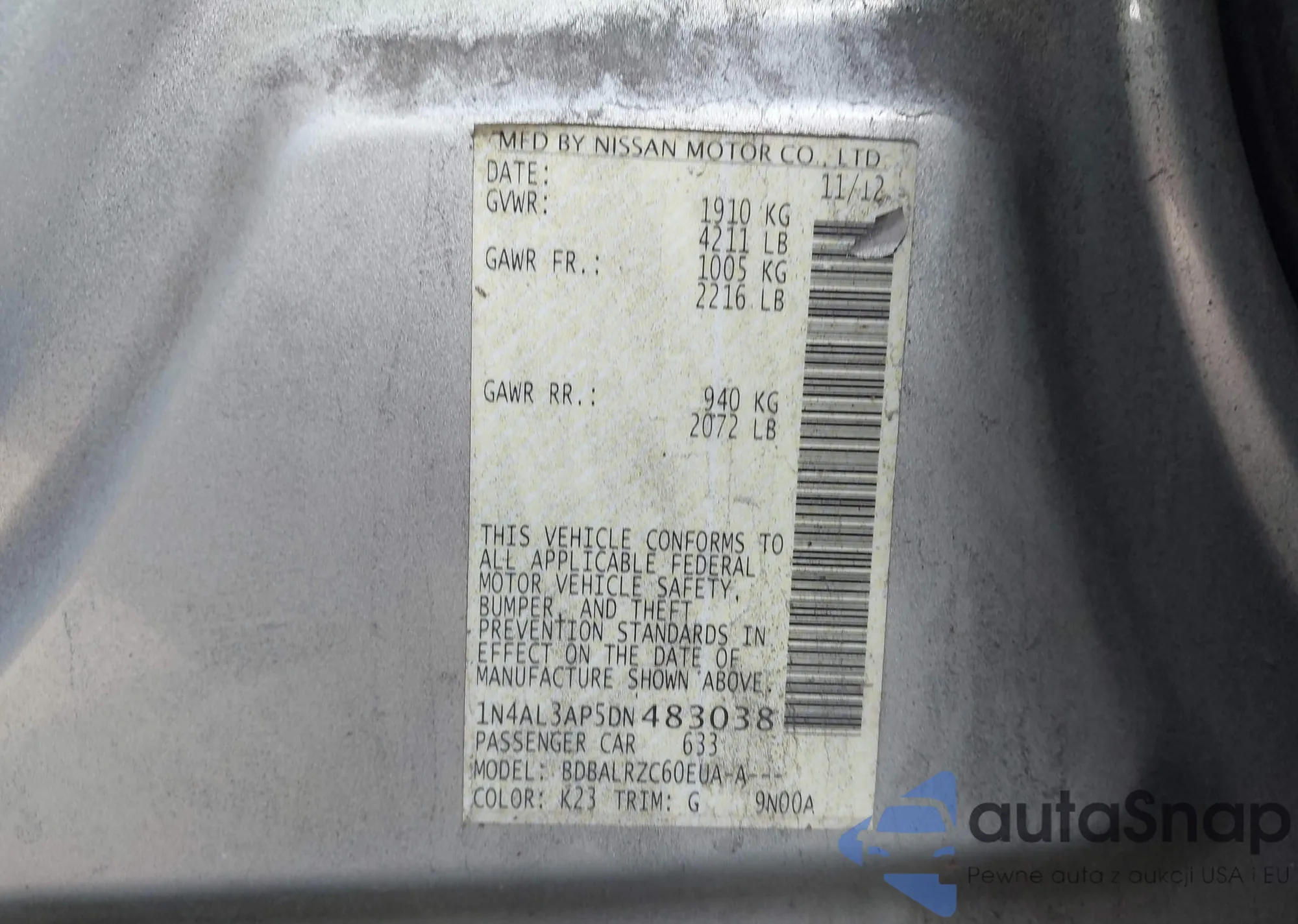 VIN: 1N4AL3AP5DN483038