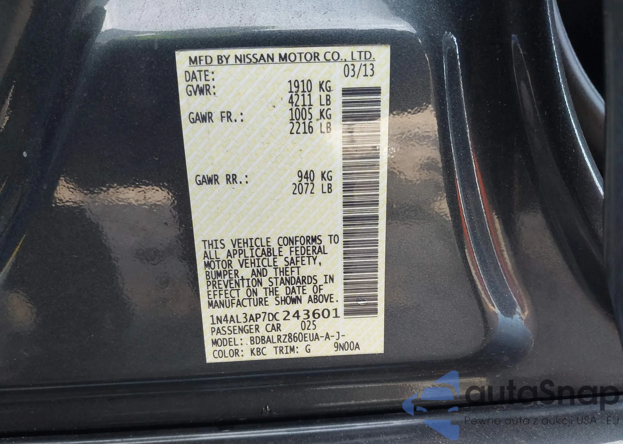 VIN: 1N4AL3AP7DC243601
