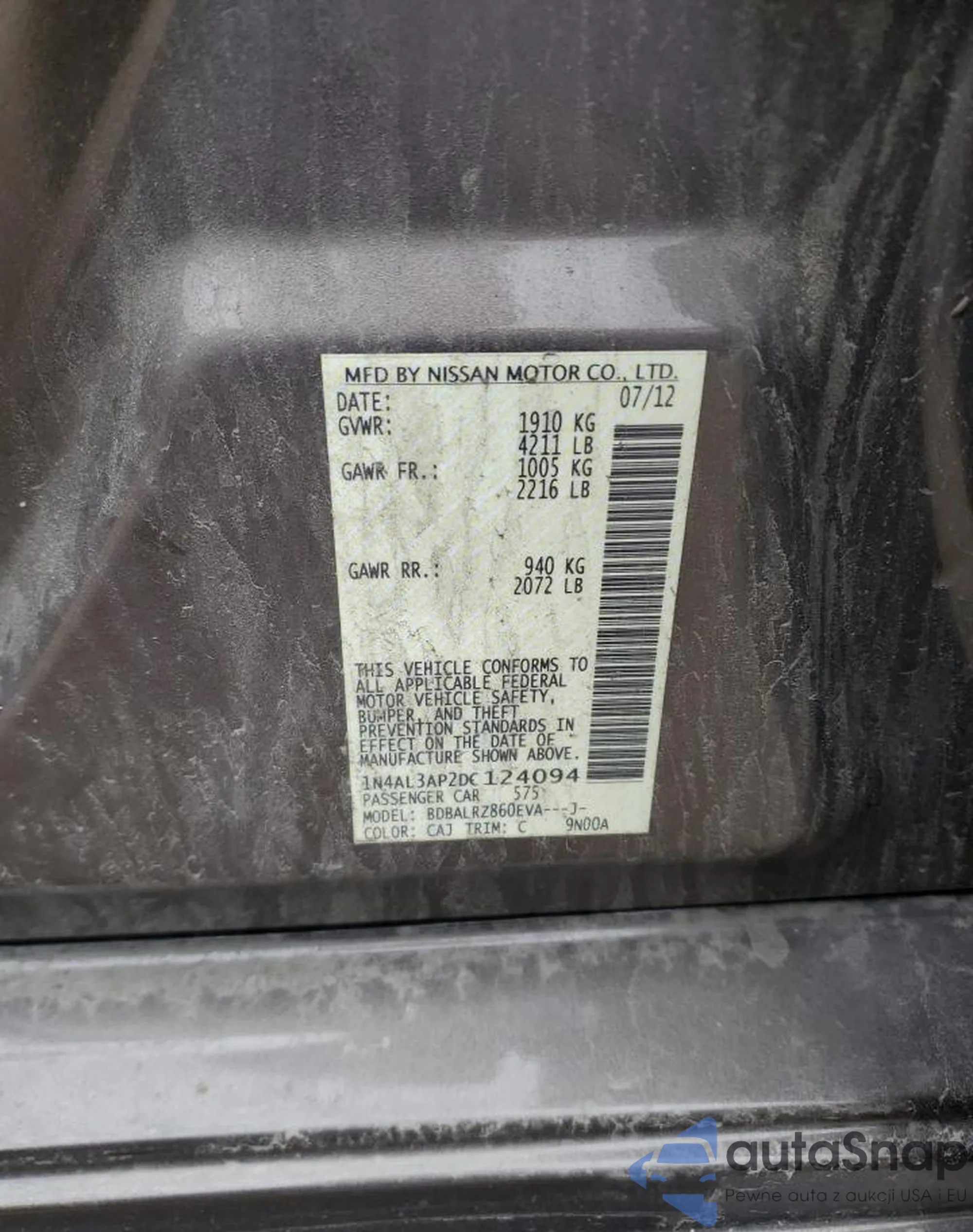 VIN: 1N4AL3AP2DC124094