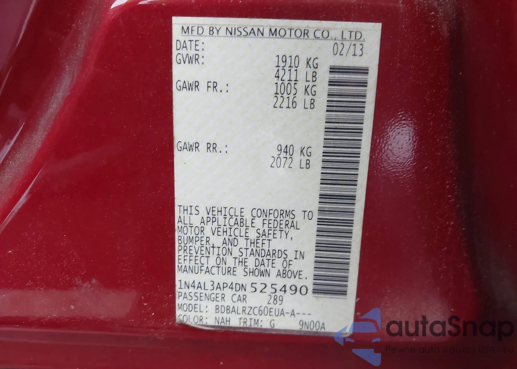 • VIN: 1N4AL3AP4DN525490