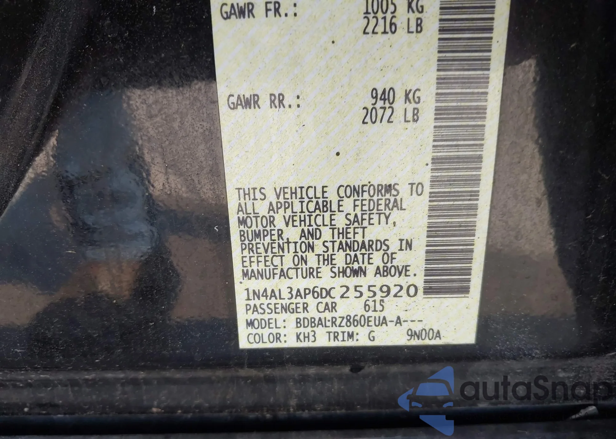 VIN: 1N4AL3AP6DC255920