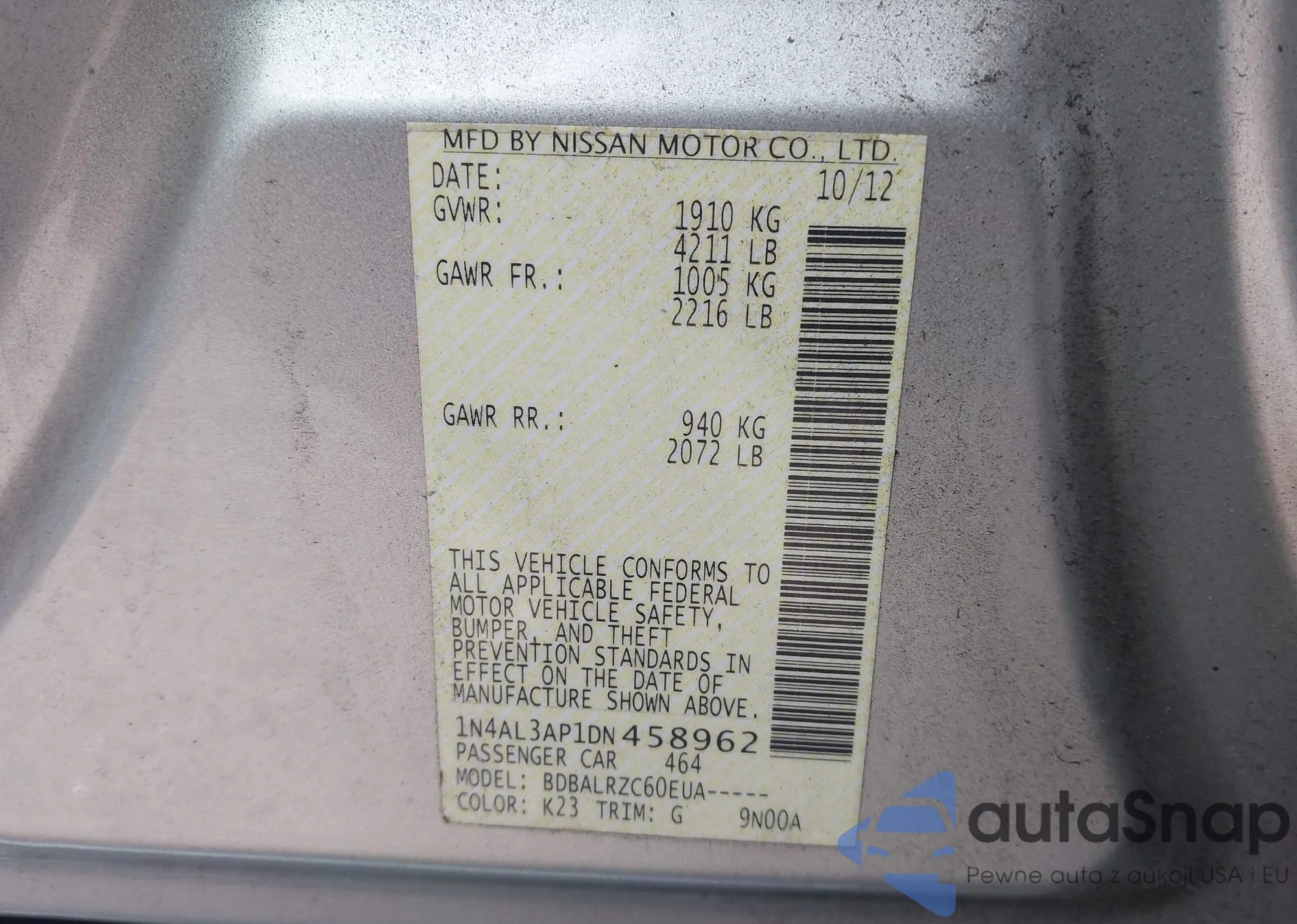 VIN: 1N4AL3AP1DN458962