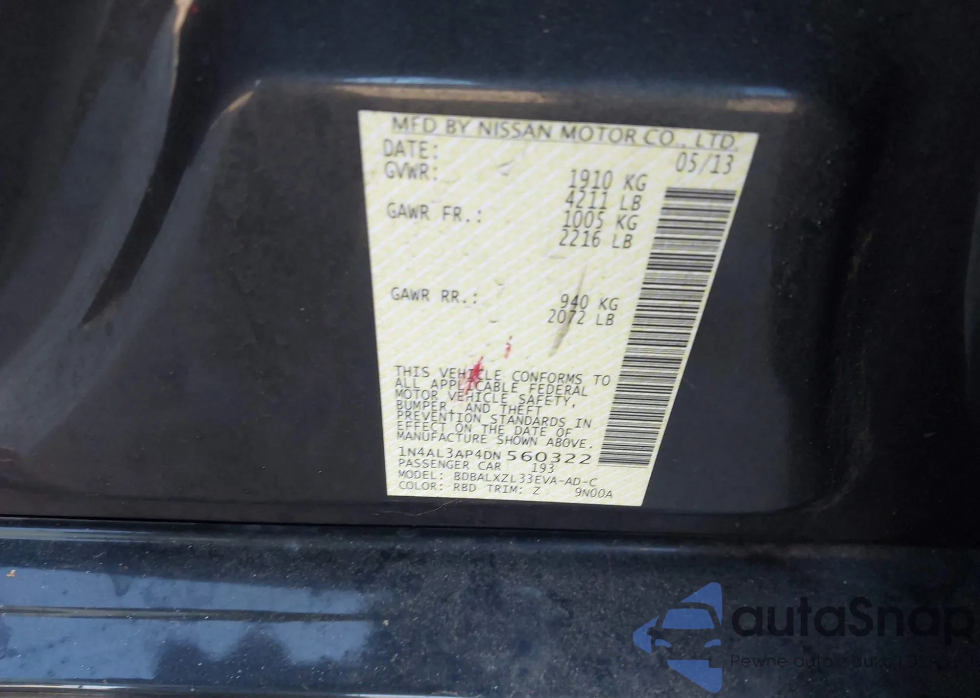VIN: 1N4AL3AP4DN560322