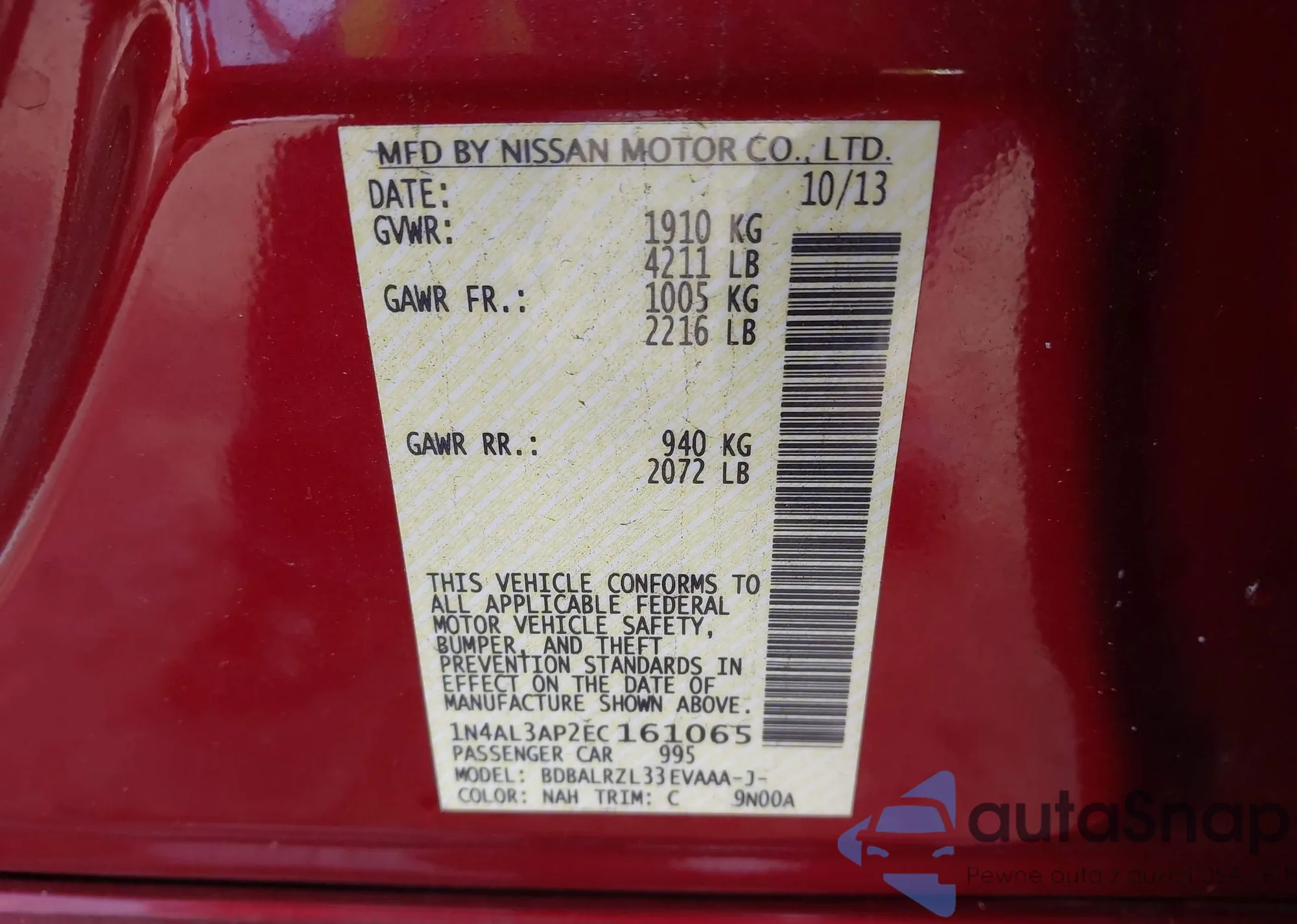 VIN: 1N4AL3AP4DN530835