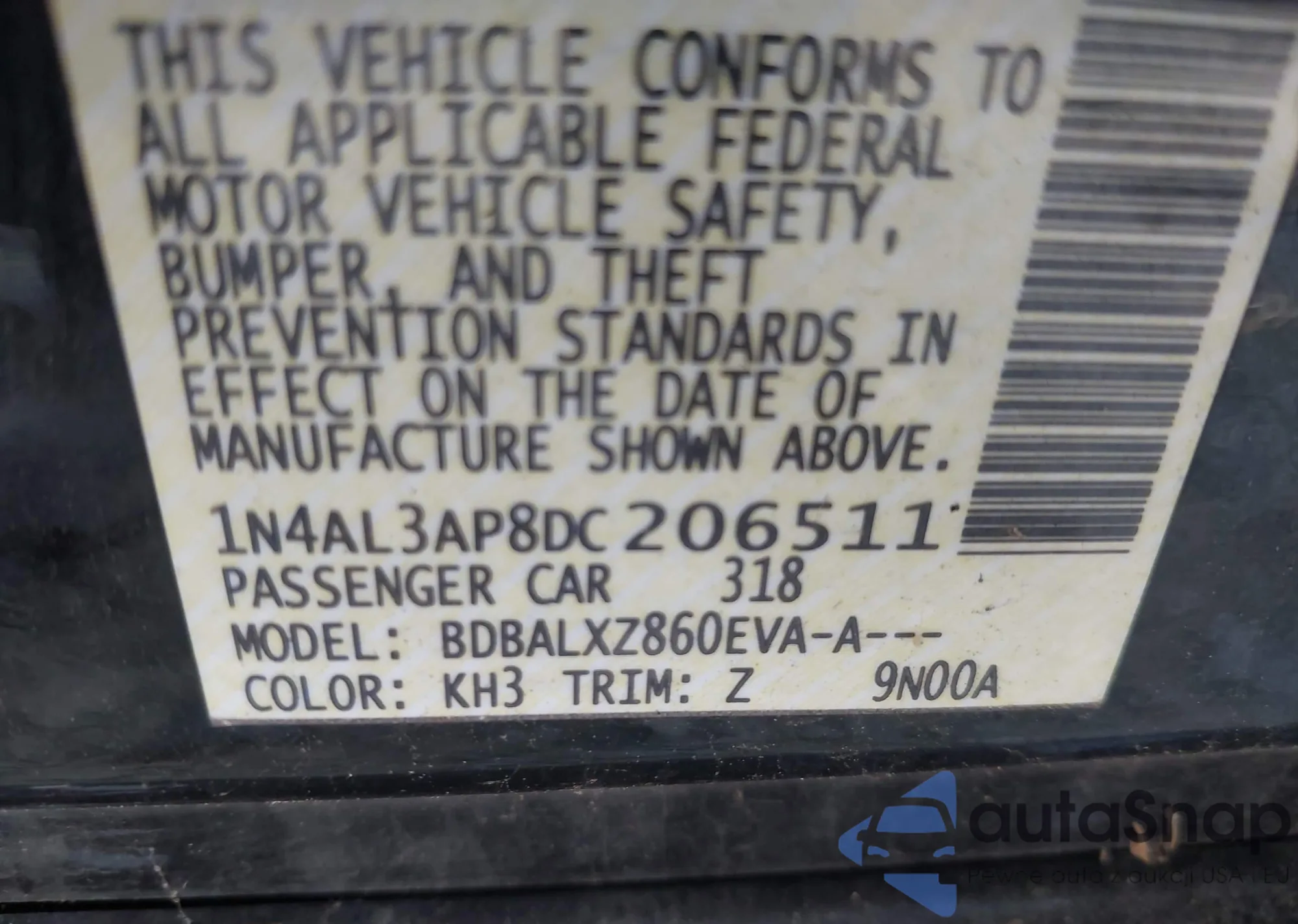 VIN: 1N4AL3AP8DC206511