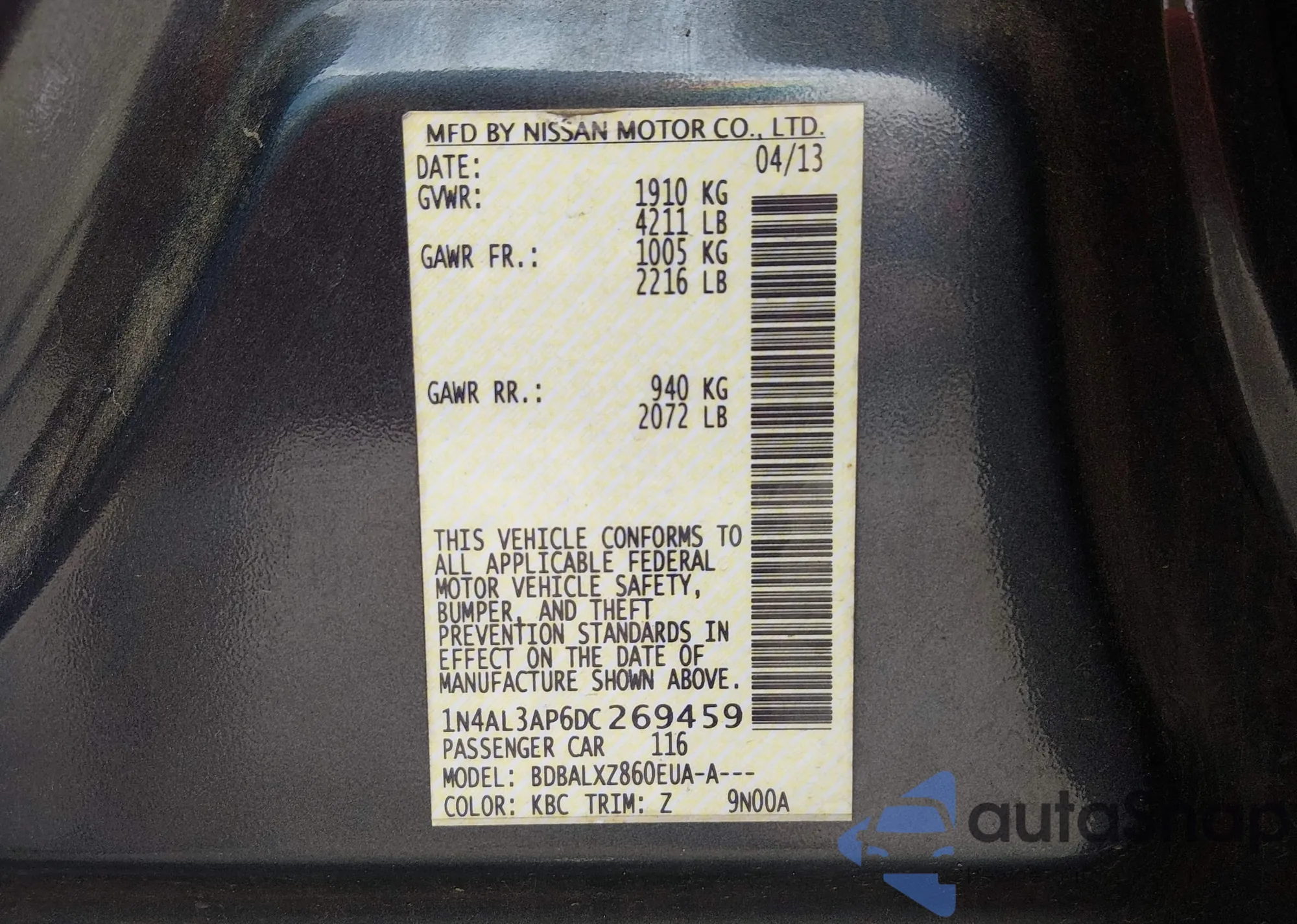 Автомобиль Nissan Altima 2013 (VIN 1N4AL3AP6DC269459) ранее не участвовал в торгах. Документы чистые, пробег соответствует или ниже среднего по рынку. Продаётся страховой компанией — рекомендуем покупку. Доставка в порт займет около 6–8 недель.
