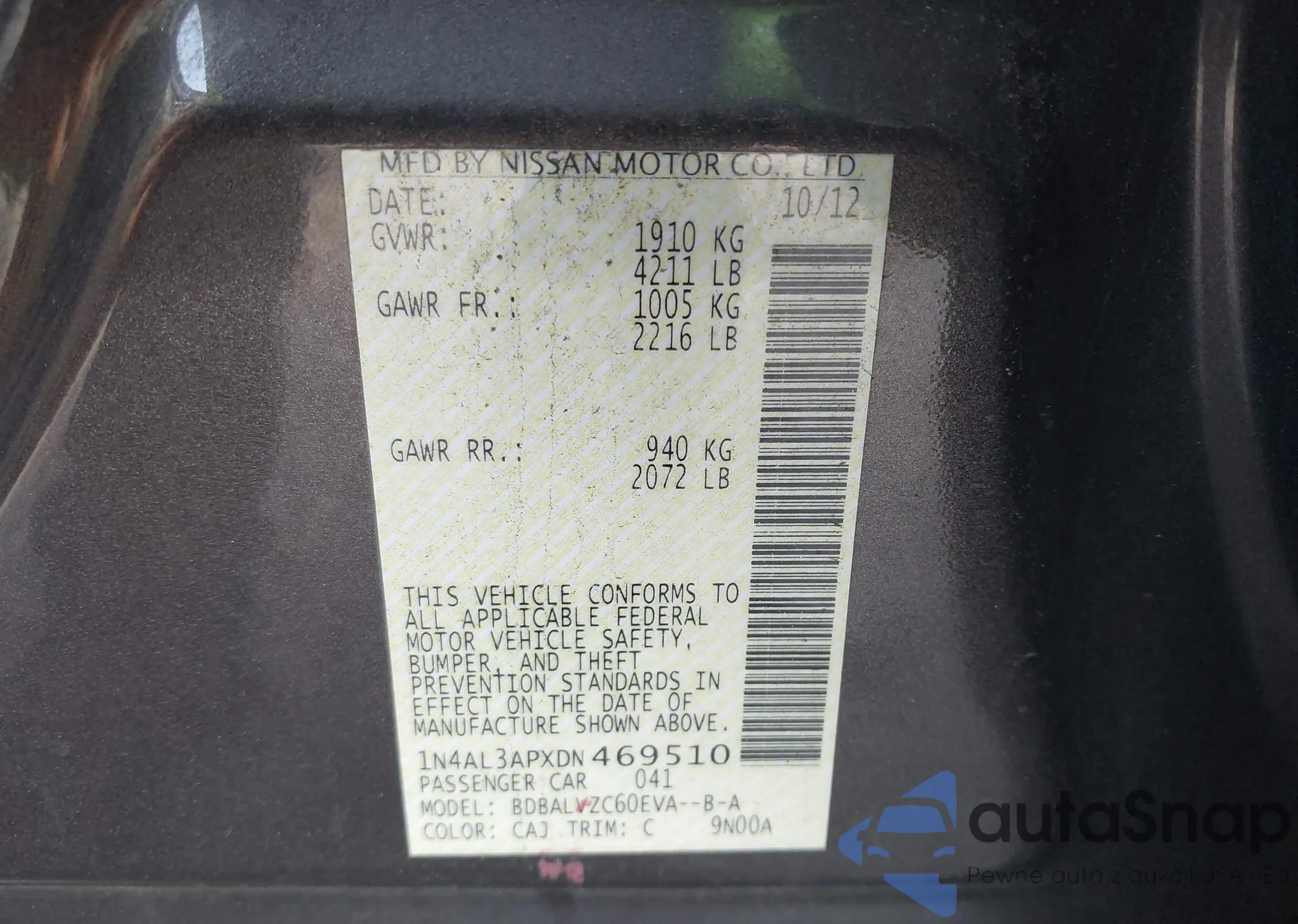 VIN: 1N4AL3APXDN469510