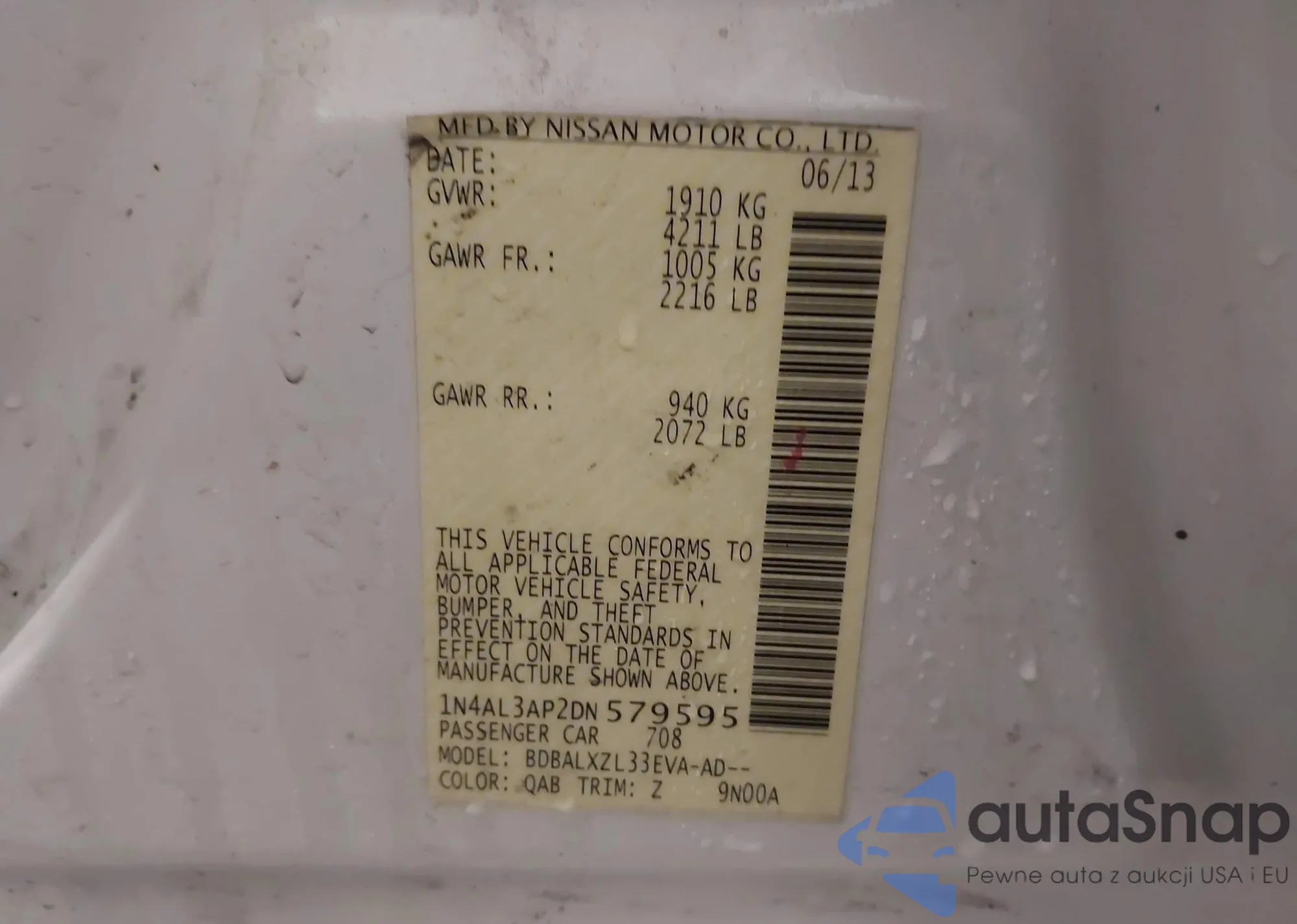 VIN: 1N4AL3AP2DN579595
