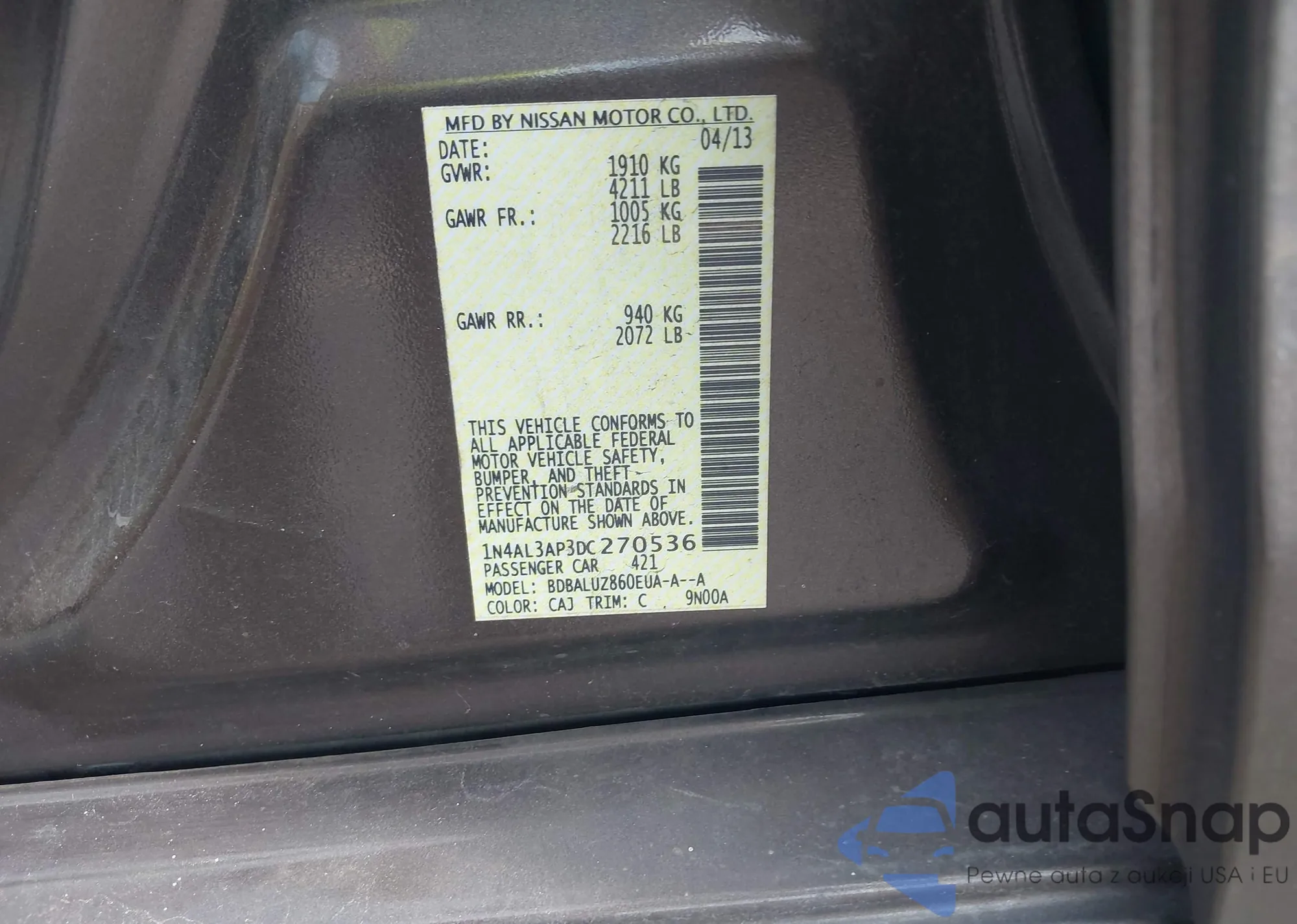 VIN: 1N4AL3AP3DC270536