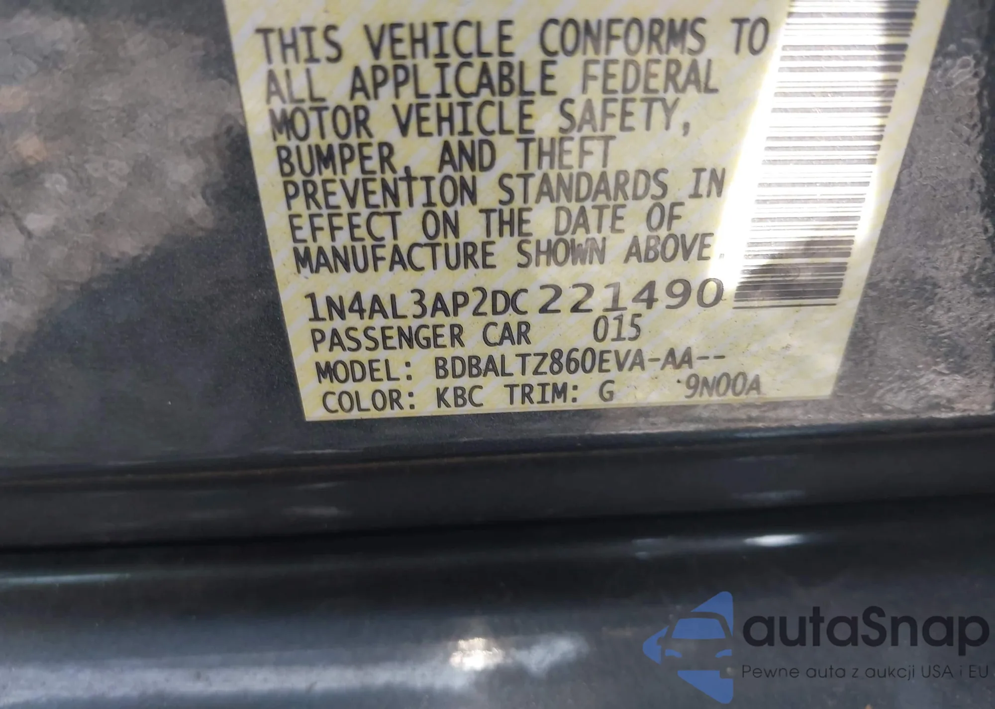 VIN: 1N4AL3AP2DC221490