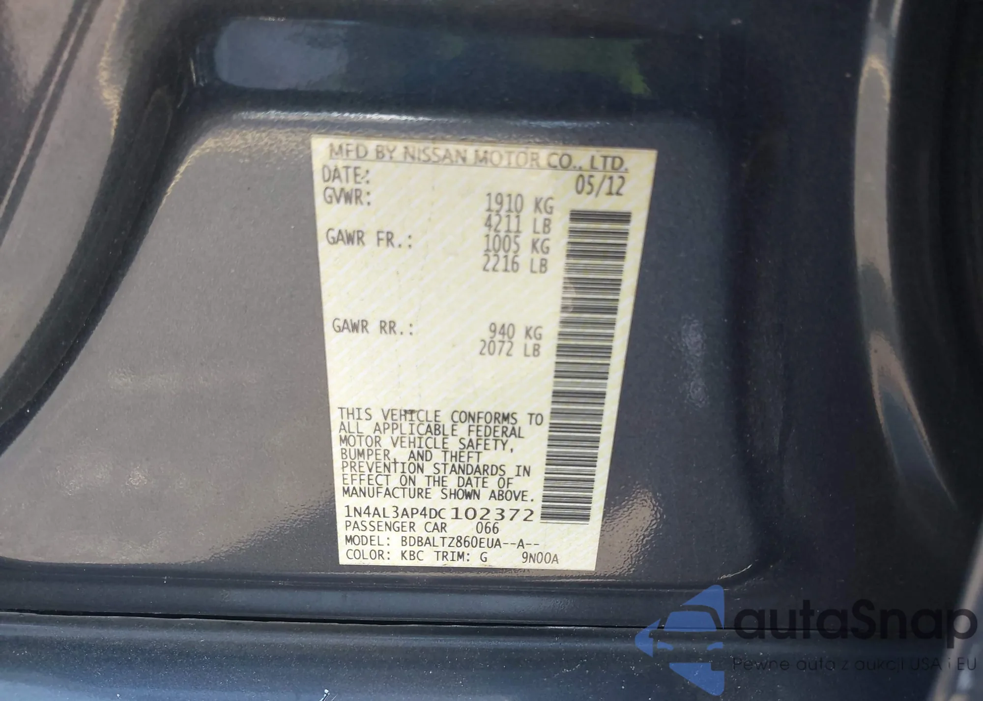 VIN: 1N4AL3AP4DC102372