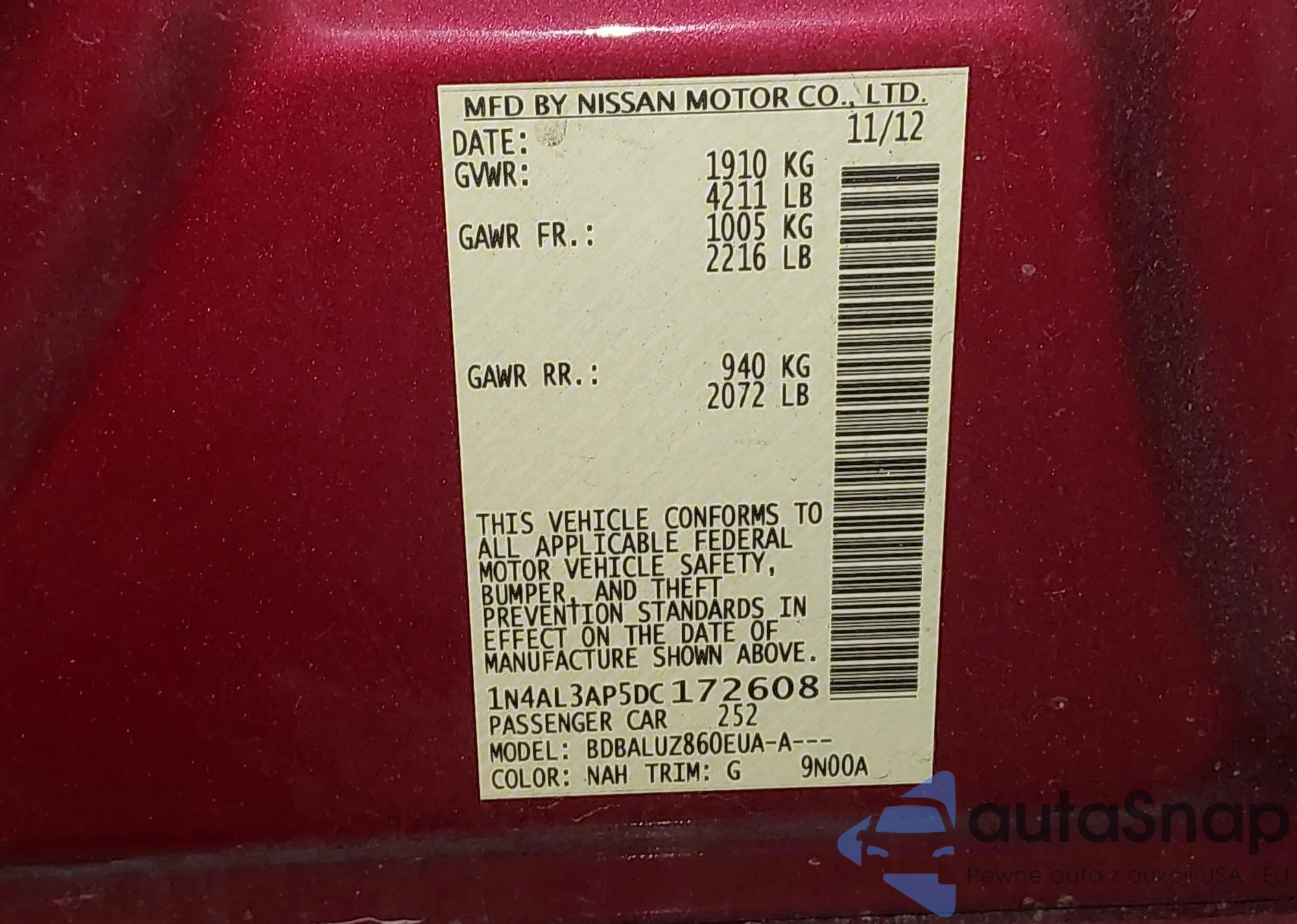 VIN: 1N4AL3AP5DC172608