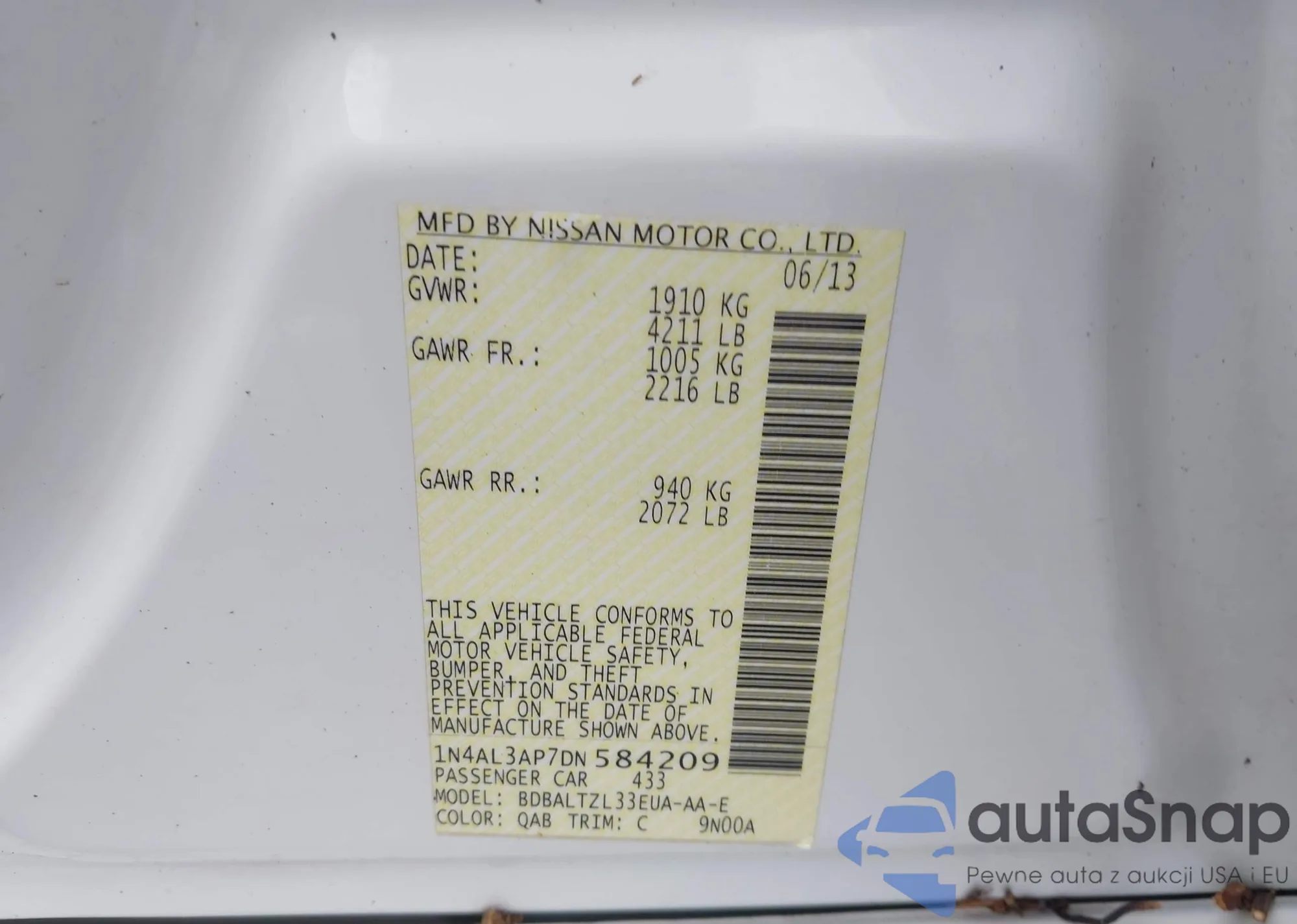 VIN: 1N4AL3AP7DN584209
