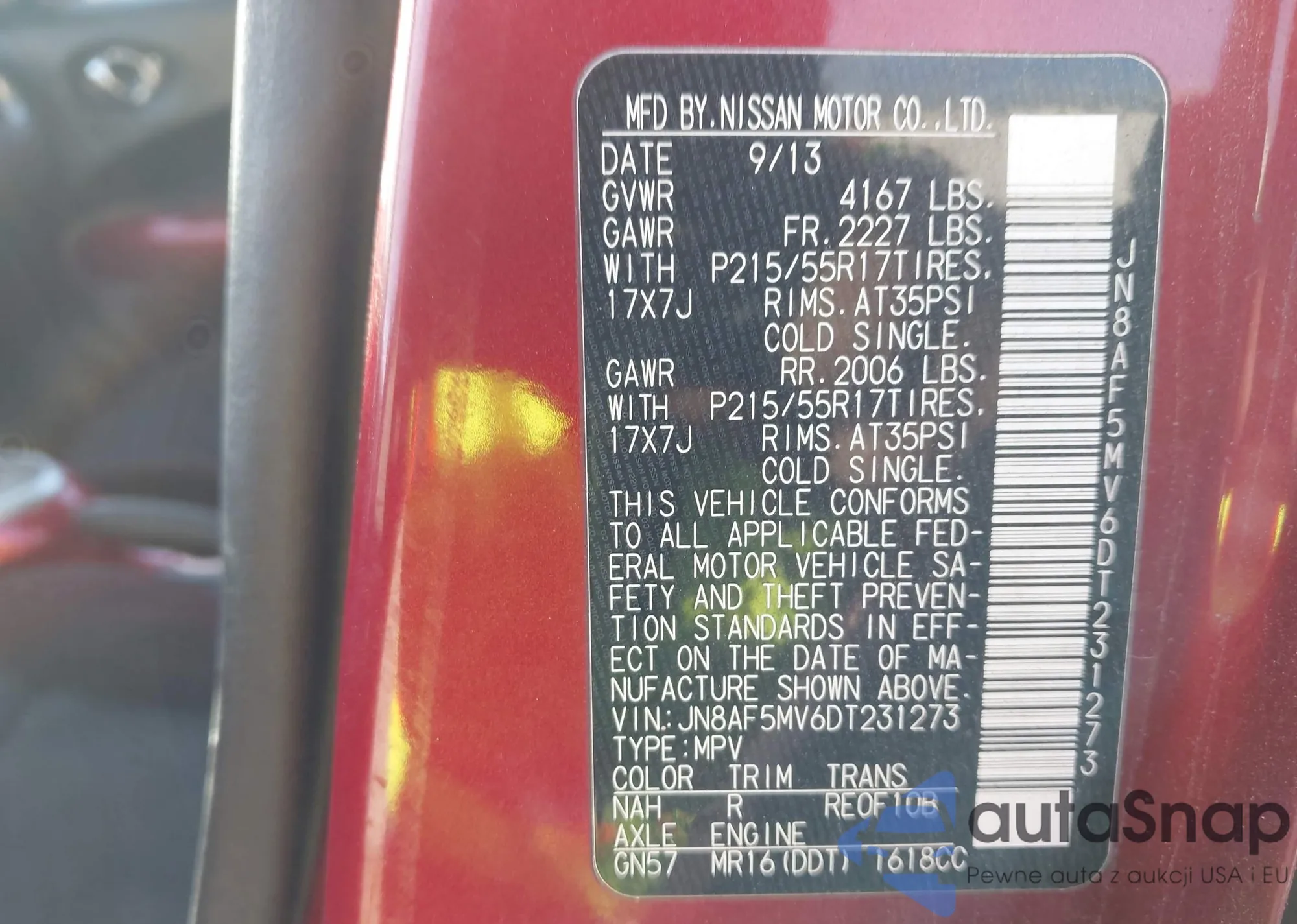 VIN: JN8AF5MV6DT231273