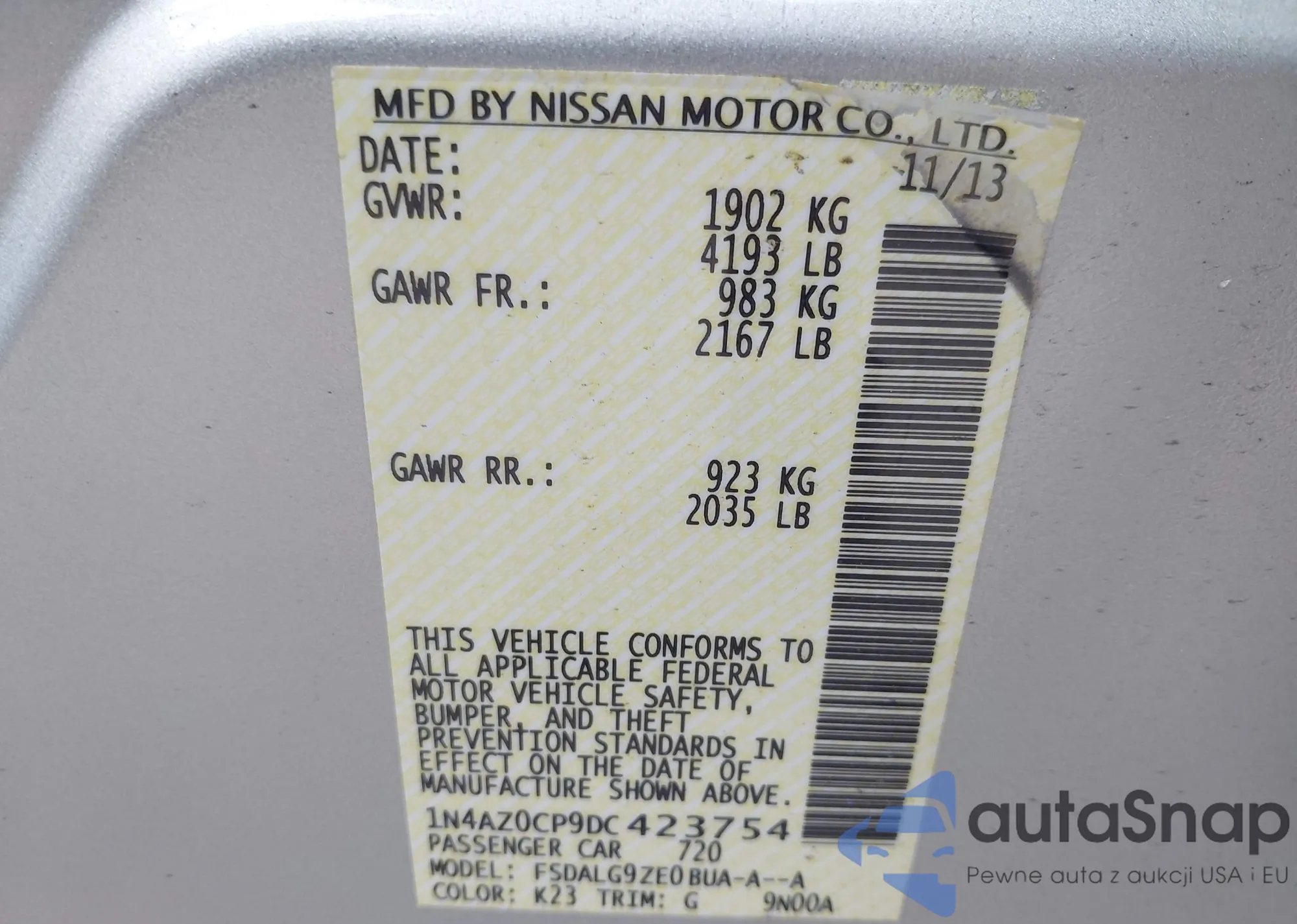VIN: 1N4AZ0CP9DC423754