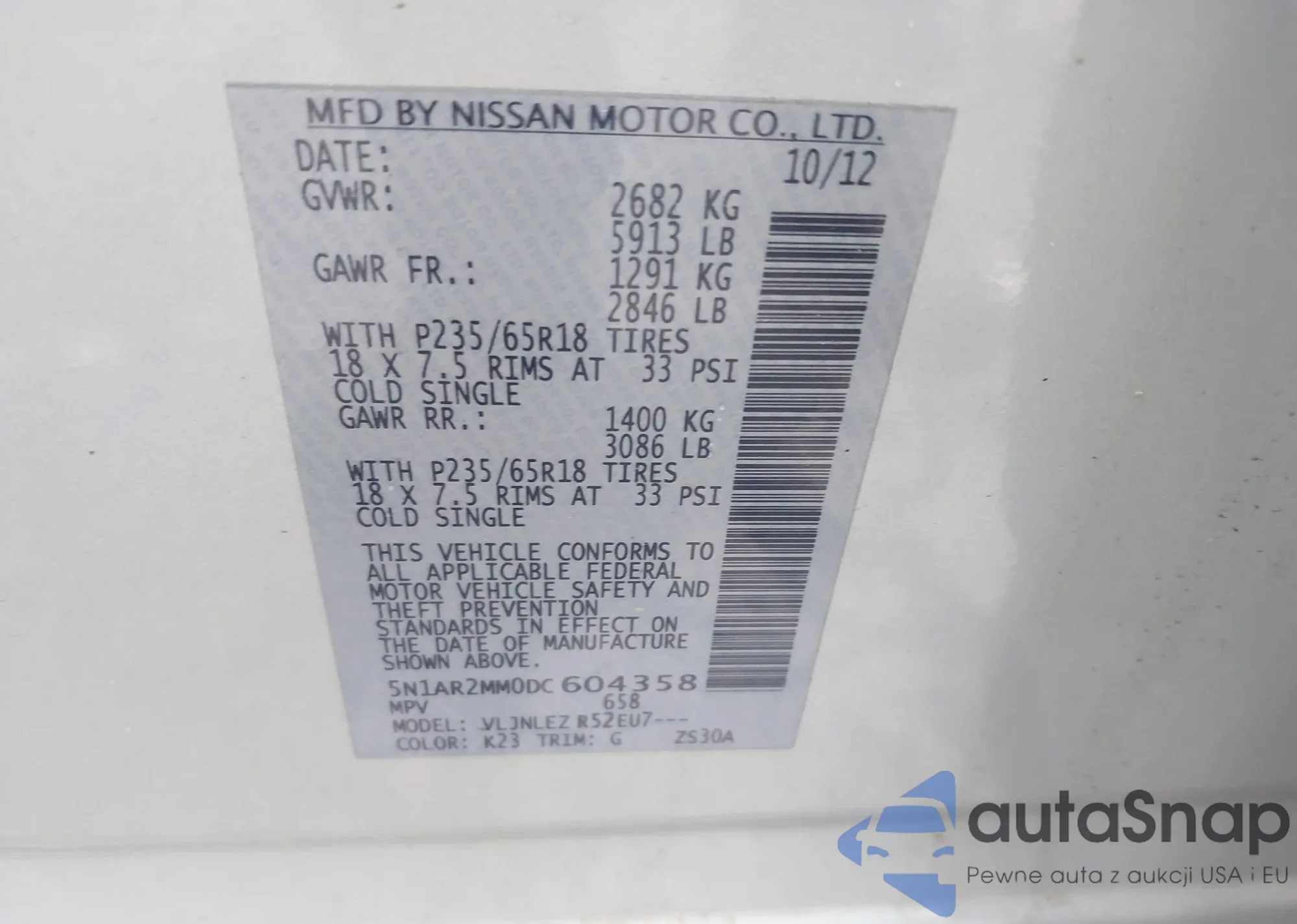 VIN: 5N1AR2MM0DC604358
