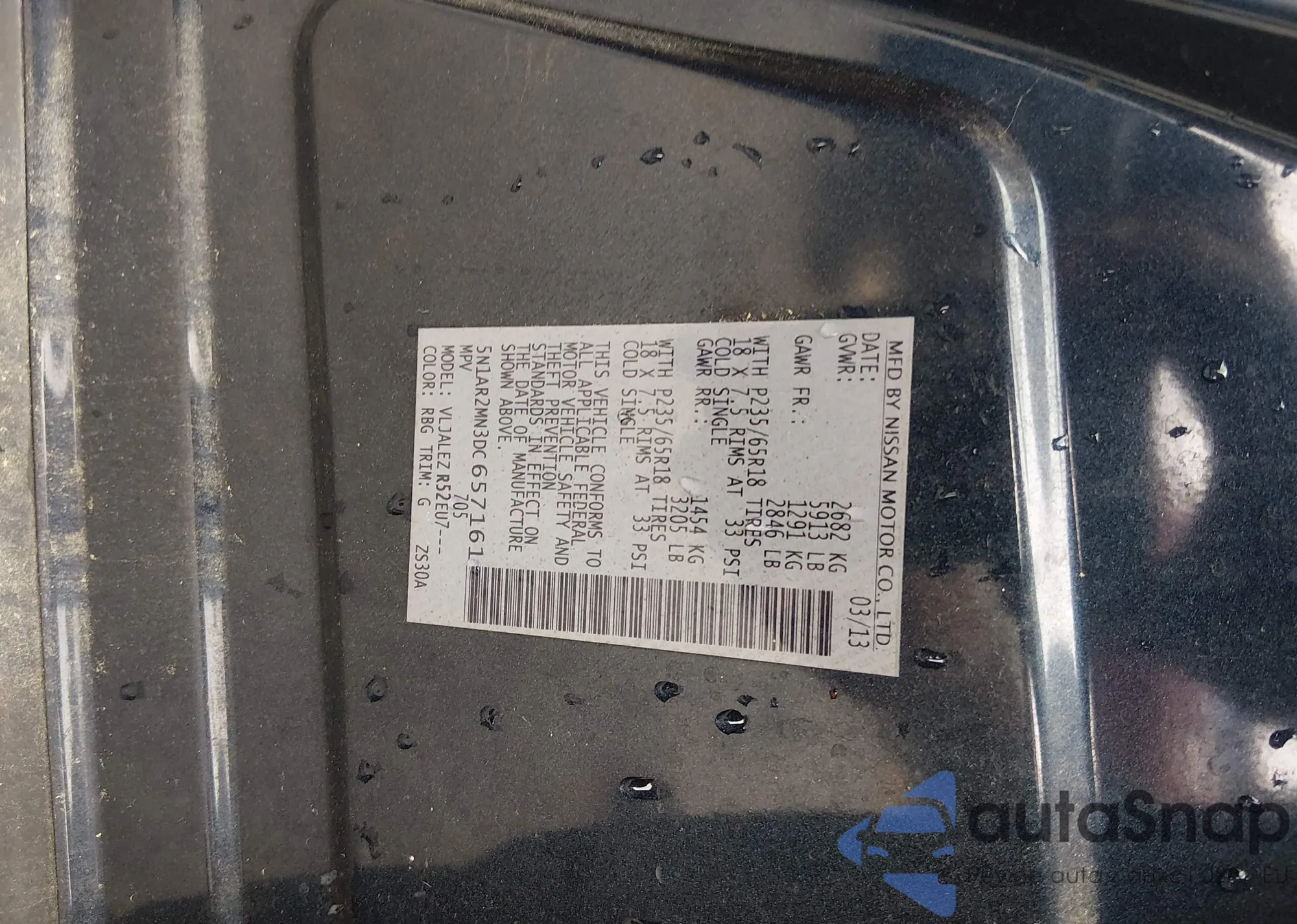 VIN: 5N1AR2MN3DC657161