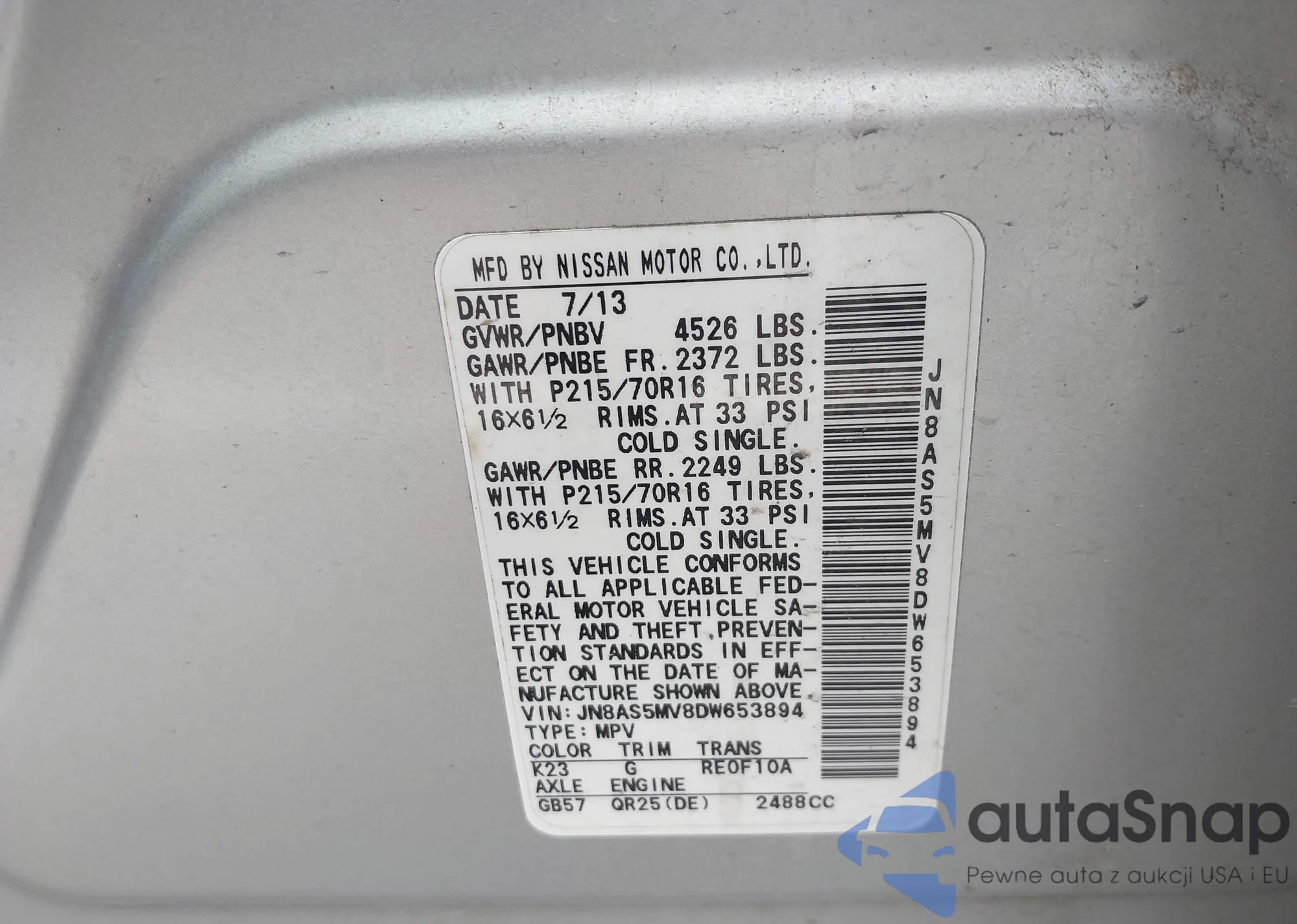 VIN: JN8AS5MV8DW653894