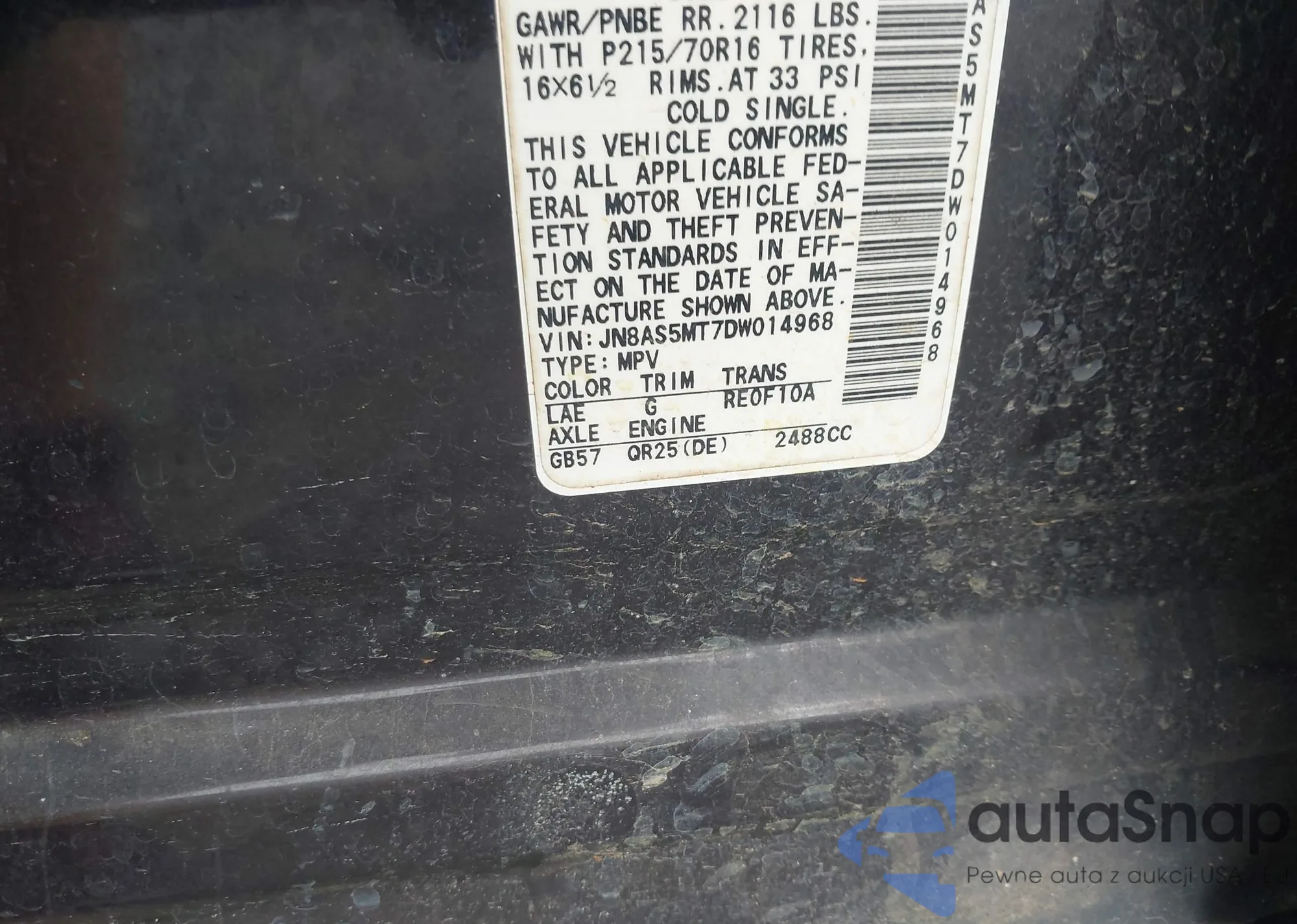 VIN: JN8AS5MT7DW014968