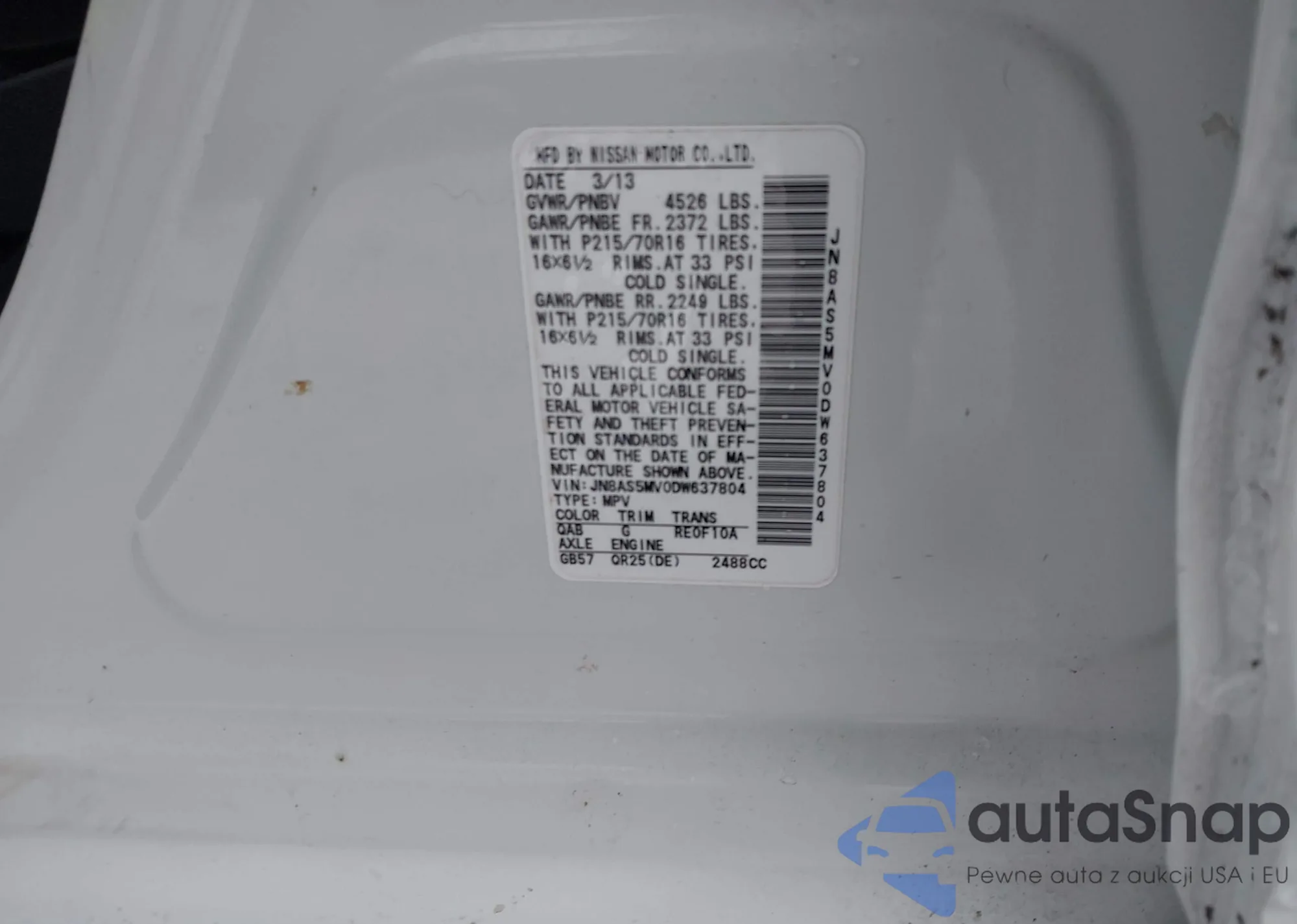 VIN: JN8AS5MV0DW637804