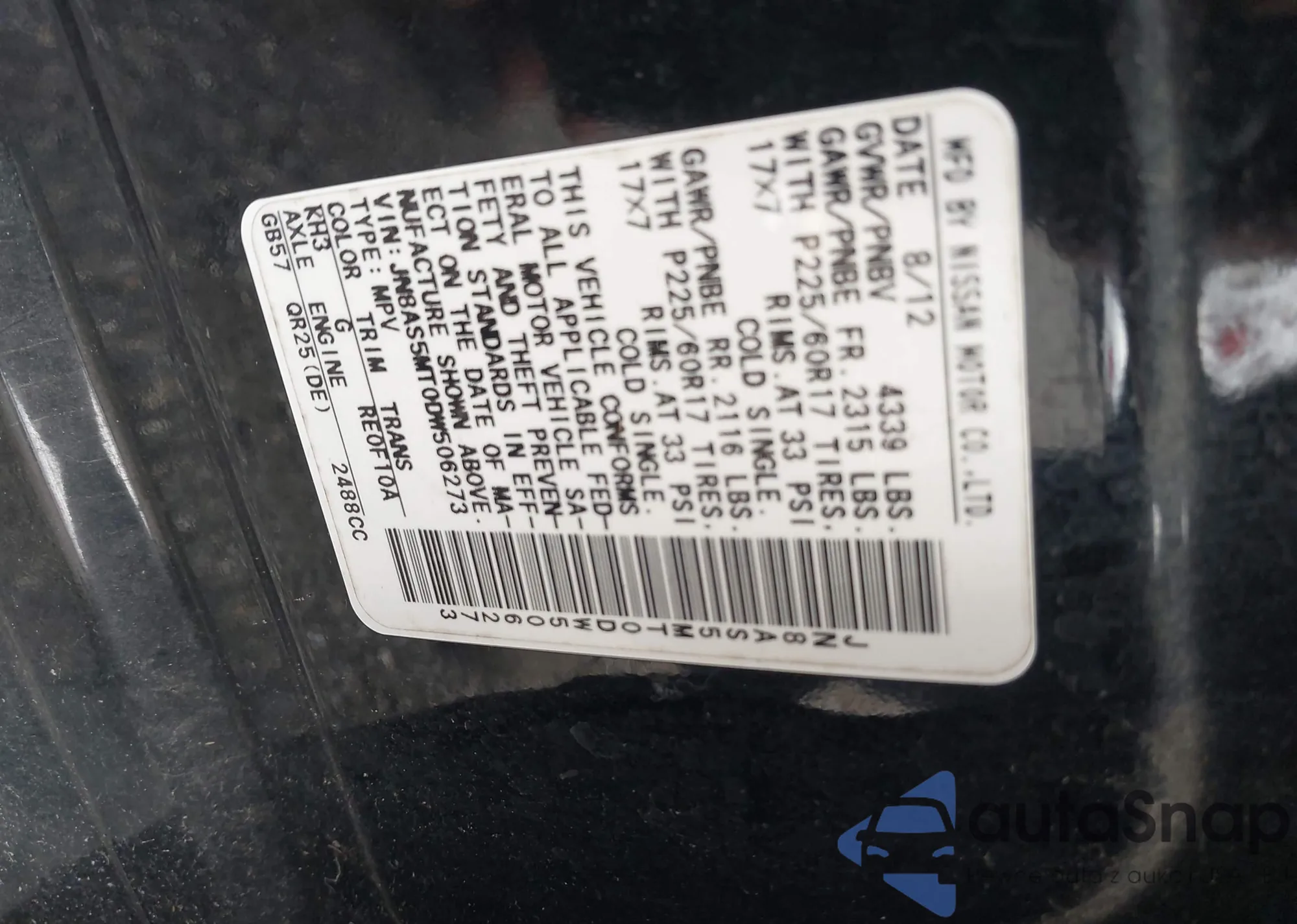VIN: JN8AS5MT0DW506273