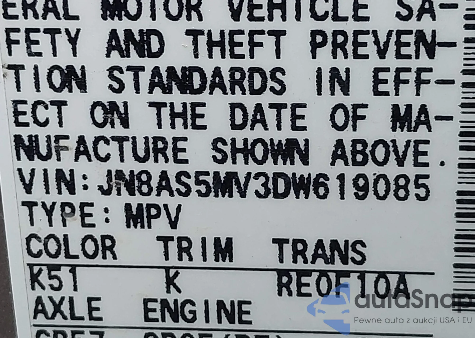 VIN: JN8AS5MV3DW619085
