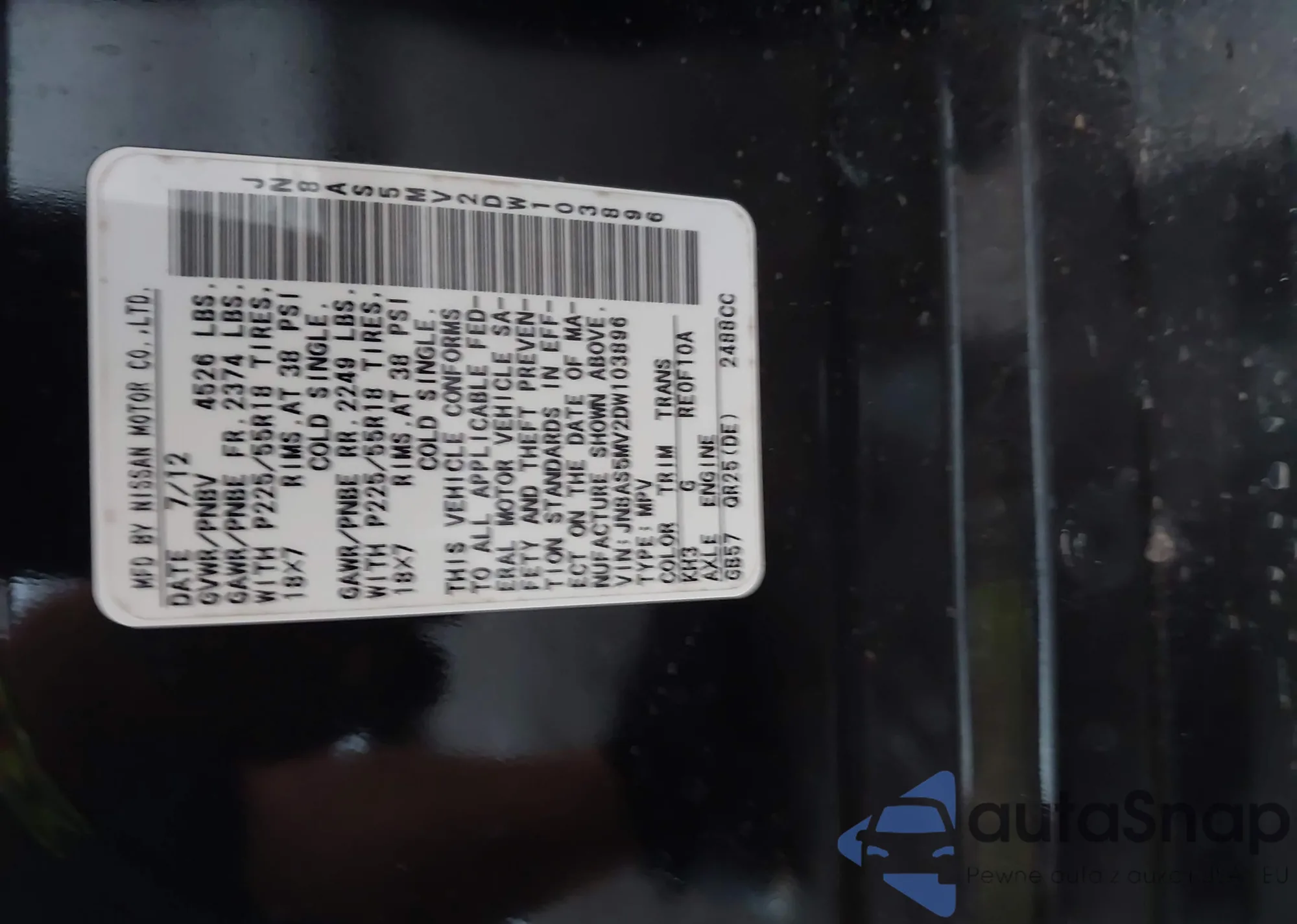 VIN: JN8AS5MV2DW103896