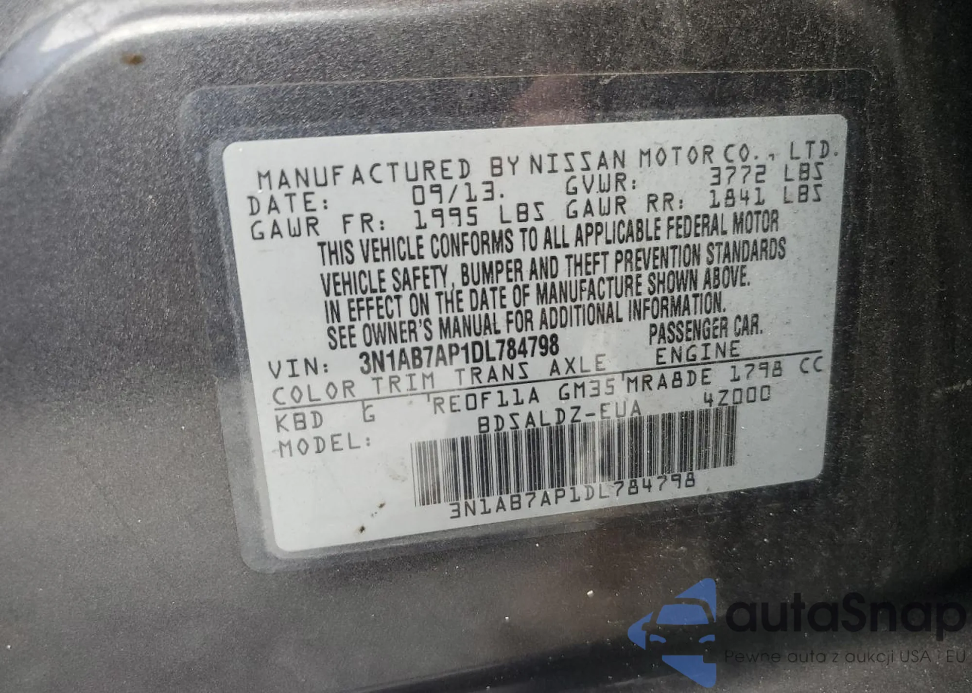 VIN: 3N1AB7AP1DL784798