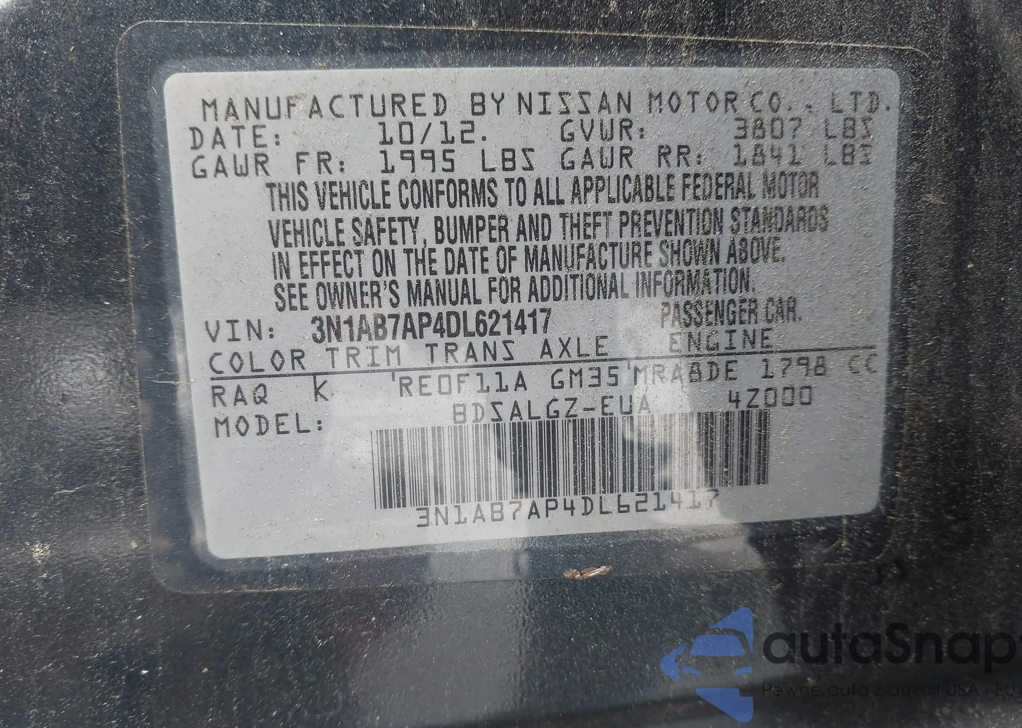 VIN: 3N1AB7AP4DL621417