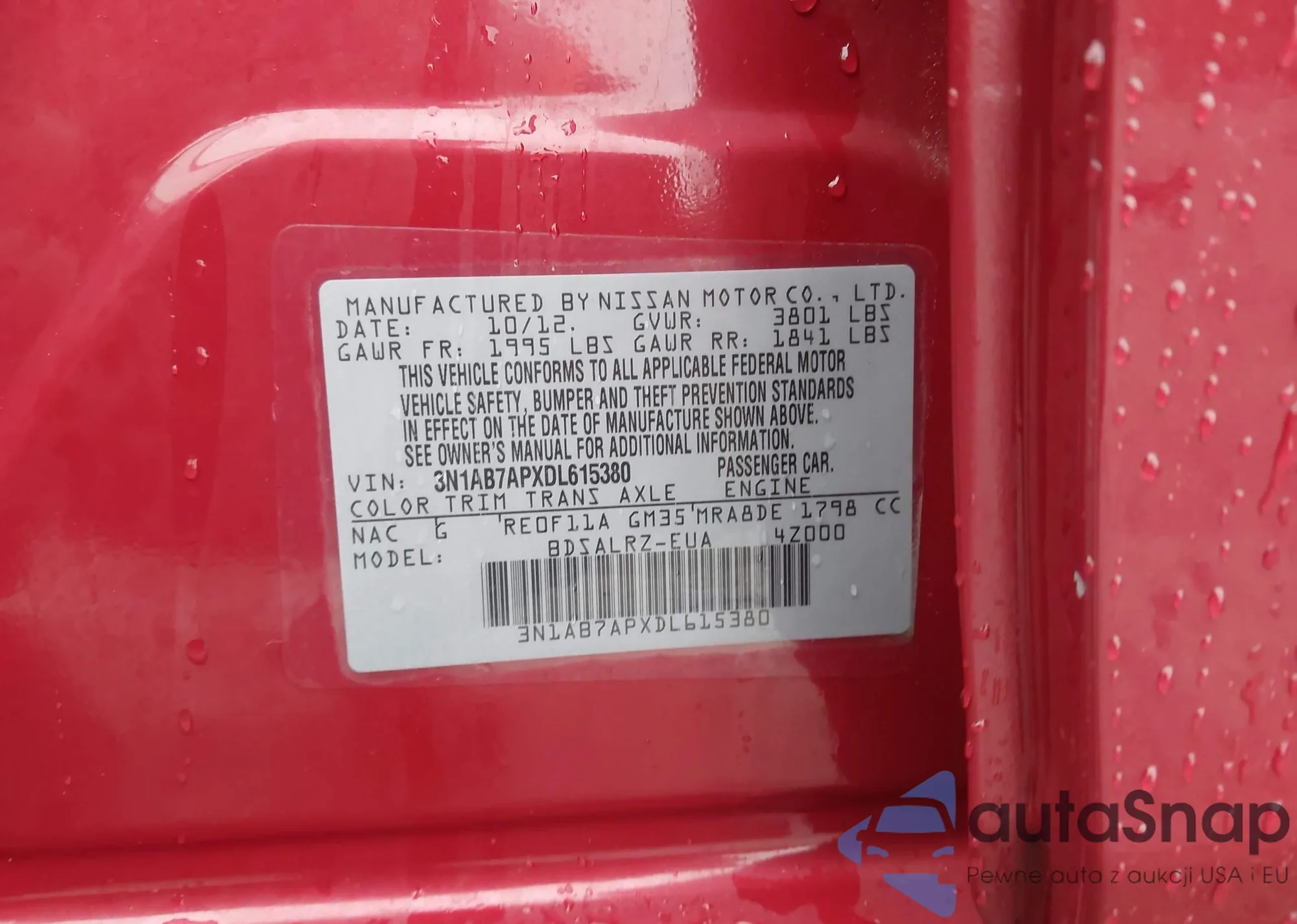 VIN: 3N1AB7APXDL615380
