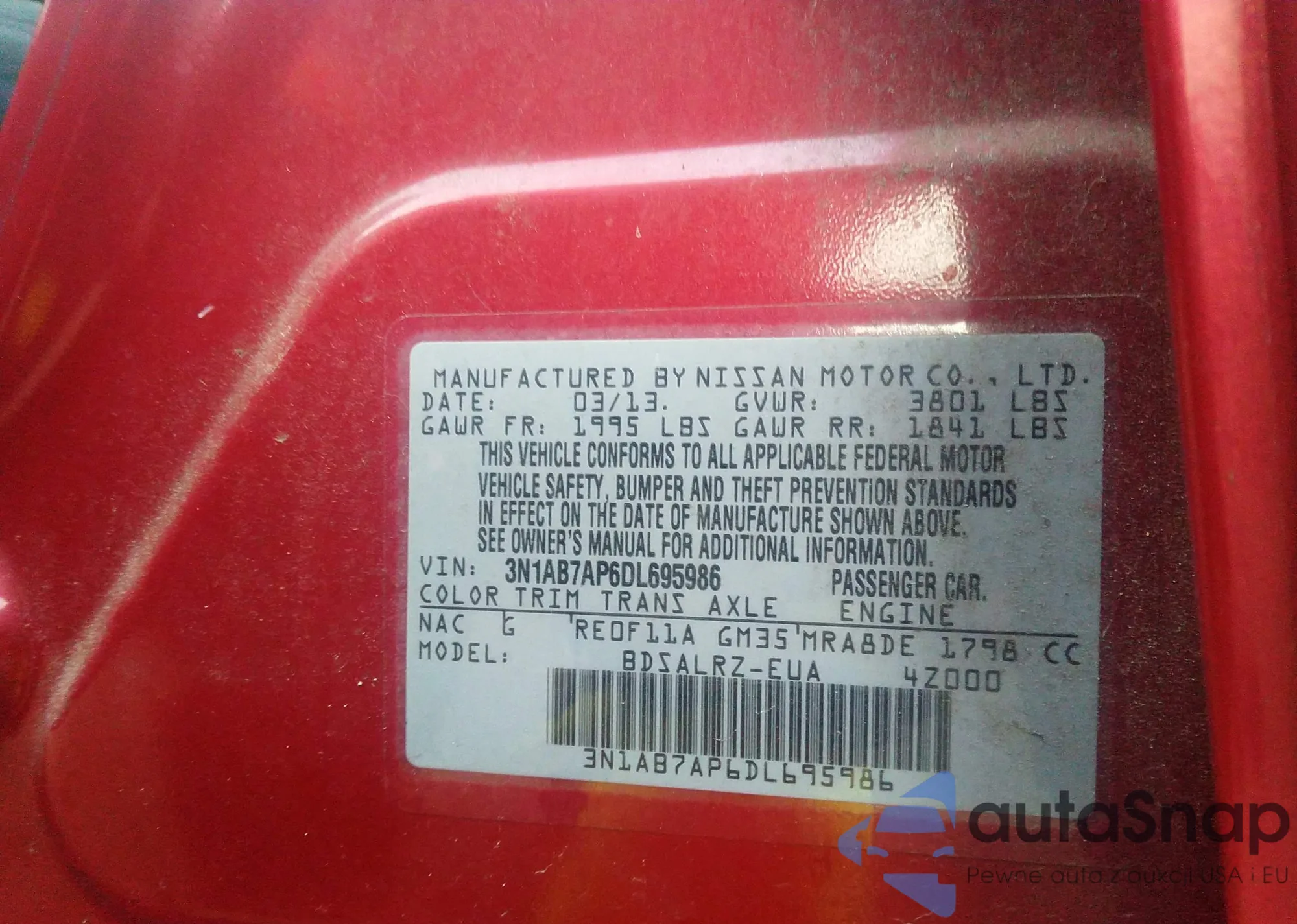 VIN: 3N1AB7AP6DL695986